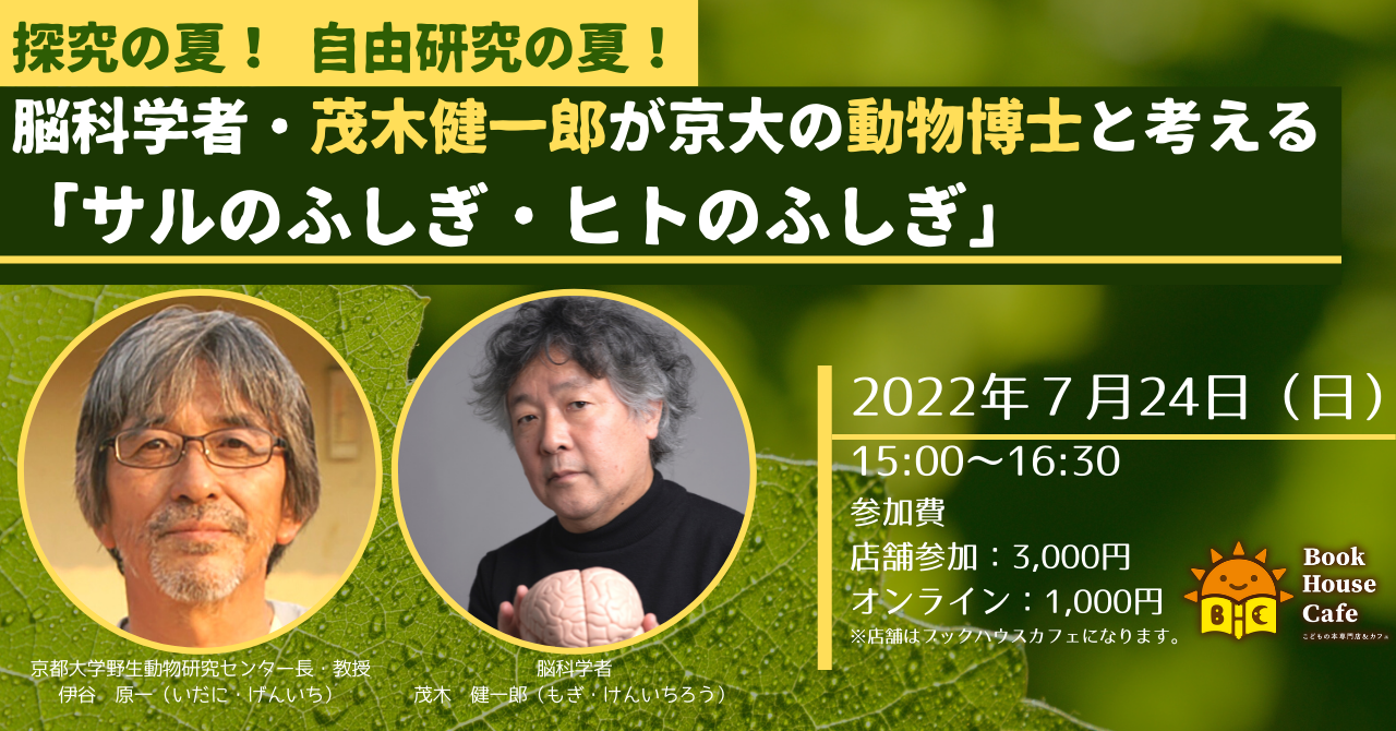 【夏休み自由研究イベント】探究の夏! 研究の夏! 脳科学者・茂木健一郎が京大の動物博士と考える「サルのふしぎ・ヒトのふしぎ」2022年7月24日(日)に開催決定!