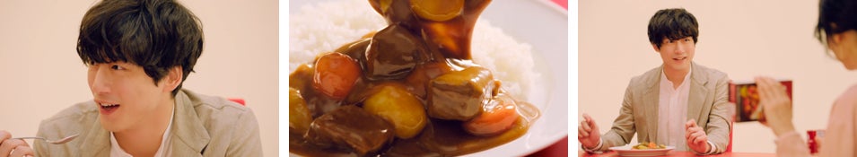 坂口さんがカレーを口にして、その親しみやすい味わいに「すぐに仲良くなれそう!」と笑顔に。おいしそうにカレーを頬張る西島さん、吉田さんを見て、さらに「この味、みんな好きでしょ!」と続け、“ニッポンのカレー”に相応しい、スパイシーながらも安心感のある味わいの魅力を伝えます。