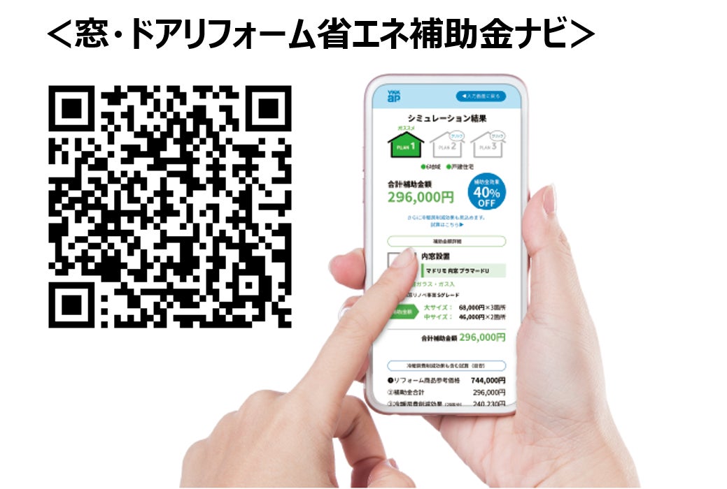 「窓・ドアリフォーム省エネ補助金ナビ2024」は、お住まいの地域や窓・ドアのリフォーム箇所数などを入力するだけで、対象となる補助金額の合計と断熱リフォームによる冷暖房費削減効果の目安を3つのプランで提示。今年から補助の対象になった「先進的窓リノベ2024事業」のドア交換(※1)もアイテム追加し、2024年版として公開します。そのほか、おすすめプラン例や具体的な商品を提案する活用ガイドの発刊、申請を行うプロユーザー様に向けた情報発信や相談窓口となる専用コールセンターも開設します。