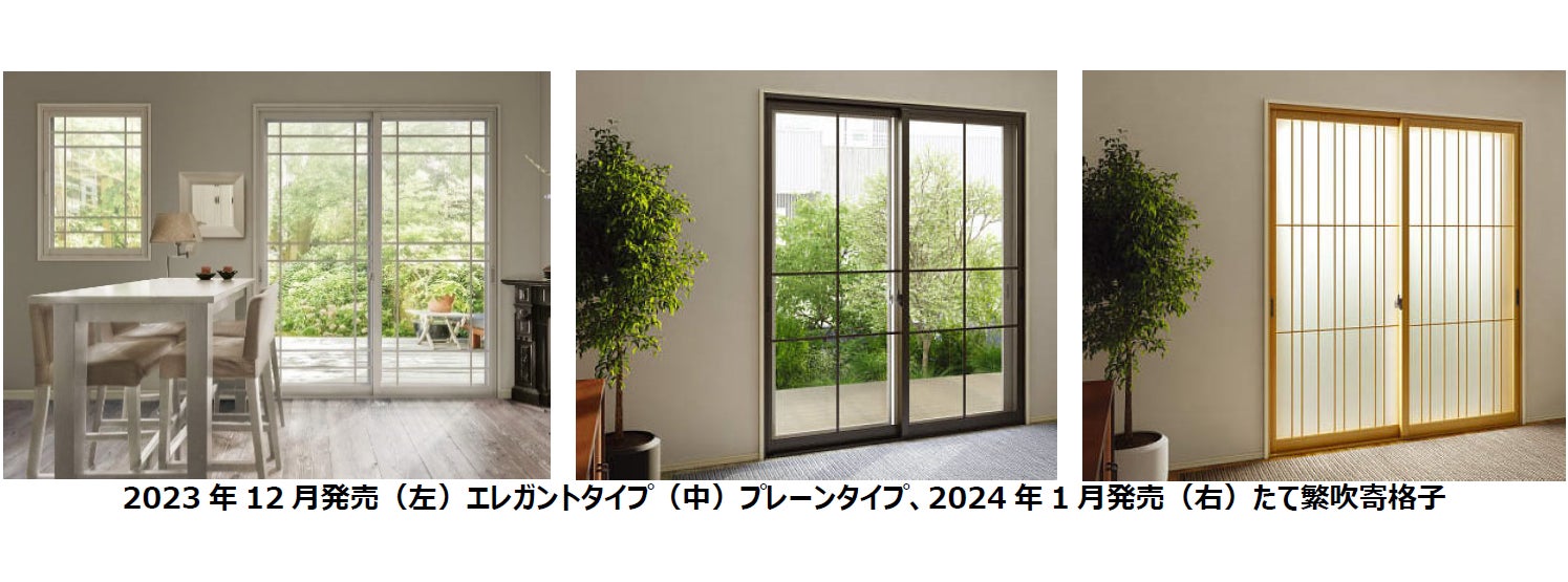 「マドリモ 内窓 プラマードU」格子入り複層ガラスに、デザイン性にこだわったエレガントタイプ・プレーンタイプ・たて繁吹寄格子の3タイプを新発売。さらに、新築用として設定している4デザインを内窓でもお選びいただけるよう、規格追加しました。合計10タイプをラインアップします。