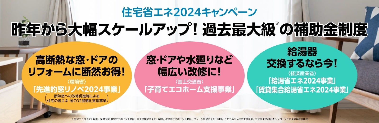 「住宅省エネ2024キャンペーン」の詳細は事務局サイト参照→https://jutaku-shoene2024.mlit.go.jp/