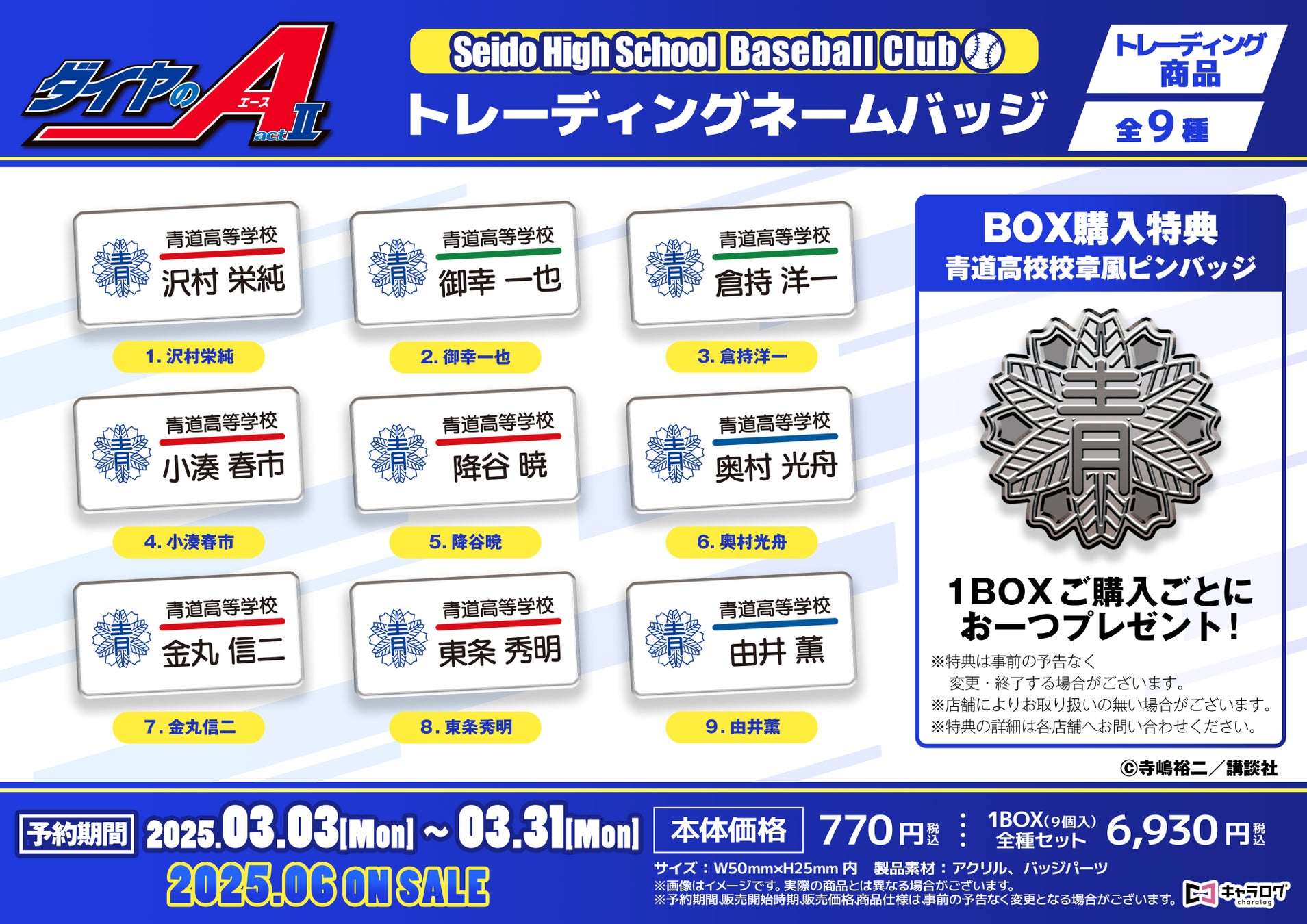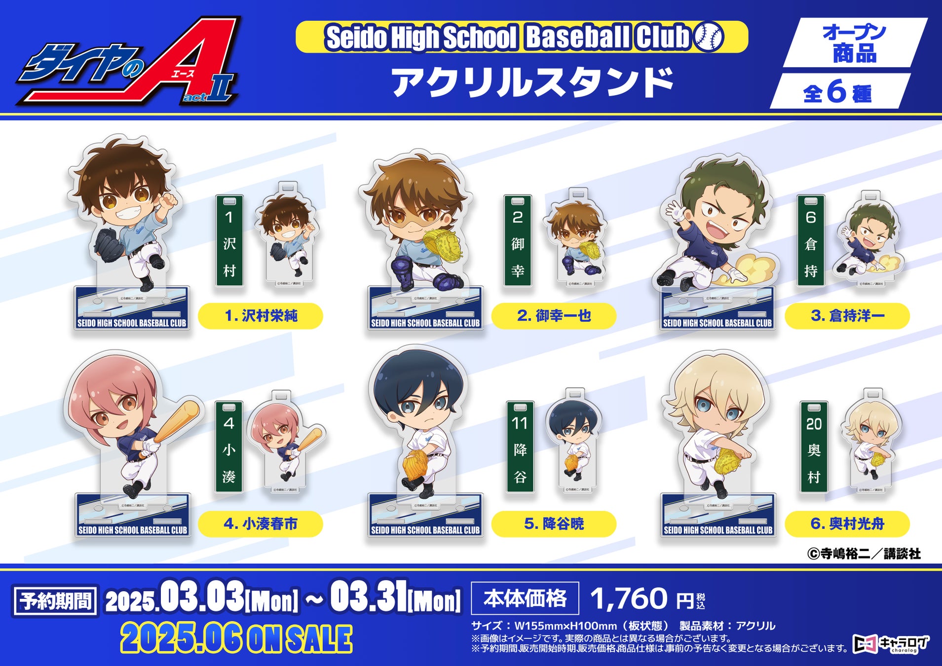 株式会社ディ・テクノ(本社:東京都港区 代表取締役社長:市原 髙明)は、2025年3月3日(月)よりダイヤのA act IIオリジナルグッズの予約受付を開始いたしました。