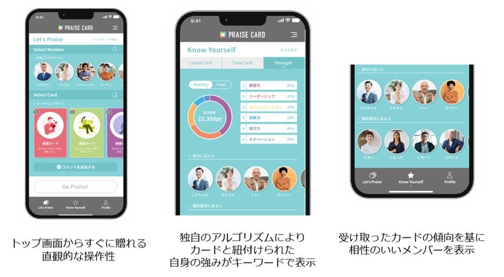 そしてこのたび、本サービスの利便性をさらに高めるため、アプリのユーザーインターフェースを大幅に刷新し、「称賛行動の習慣化」「成長意欲の向上」「チームワークの向上」を促進するUXを実現しました。