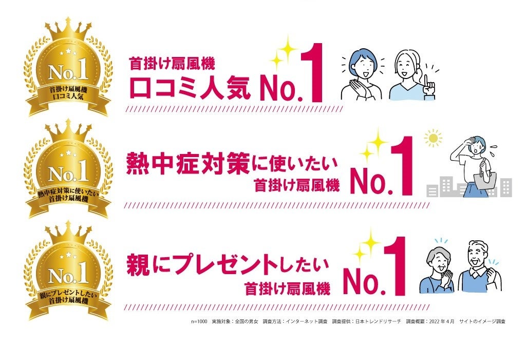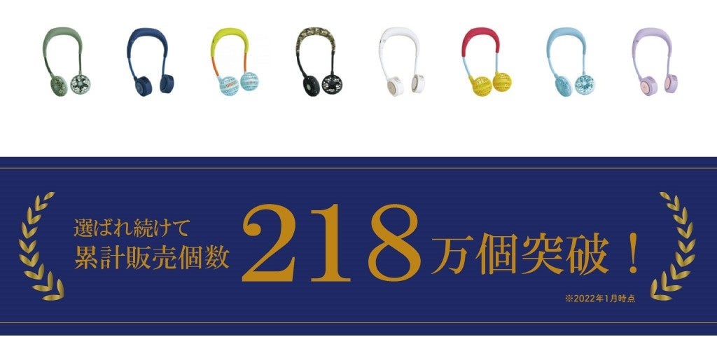 2019年から販売開始したハンズフリー扇風機「WFan(ダブルファン)」は今年に入りシリーズ累計218万台を突破しました。WFanは、使う人のことを第一に考え、毎年改良を重ね、より使いやすく進化しています。 2022年は最新バージョンの【ダブルファンハンズフリー ヨガシロッコ クリア】、【ダブルファンハンズフリーwithコールレシーバー】が誕生しました。置き型の扇風機のようなパワフルな風と、ハンディ扇風機のような携帯性を兼ね備えた首掛け扇風機「WFan」は、首掛けタイプで両手が使えるので、好きなこと、やりたいことに夢中になれるので「いつでもどんなシーンでも使える扇風機」として人気を博しています。そして、2022年4月に行われた日本トレンドリサーチ社によるインターネット調査において「首掛け扇風機」部門で「WFan」が『親にプレゼントしたい首掛け扇風機No.1!』、『熱中症対策に使いたい首掛け扇風機No.1!』、『首掛け扇風機口コミ人気No.1!』の3冠を達成いたしました。