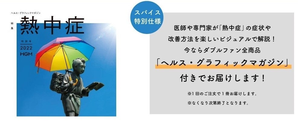 医師や専門家が「熱中症」の症状や改善方法をさまざまな角度から楽しいビジュアルで解説した「ヘルス・グラフィックマガジン」付きでお届けします。さらに熱中症対策にお役立ていただけます。