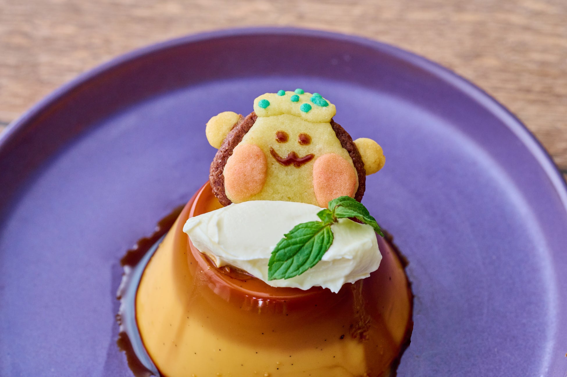 おおば湯オリジナルキャラクター“ゆきち”のクッキーが飾られた、写真を撮りたくなる、可愛らしいプリンです。