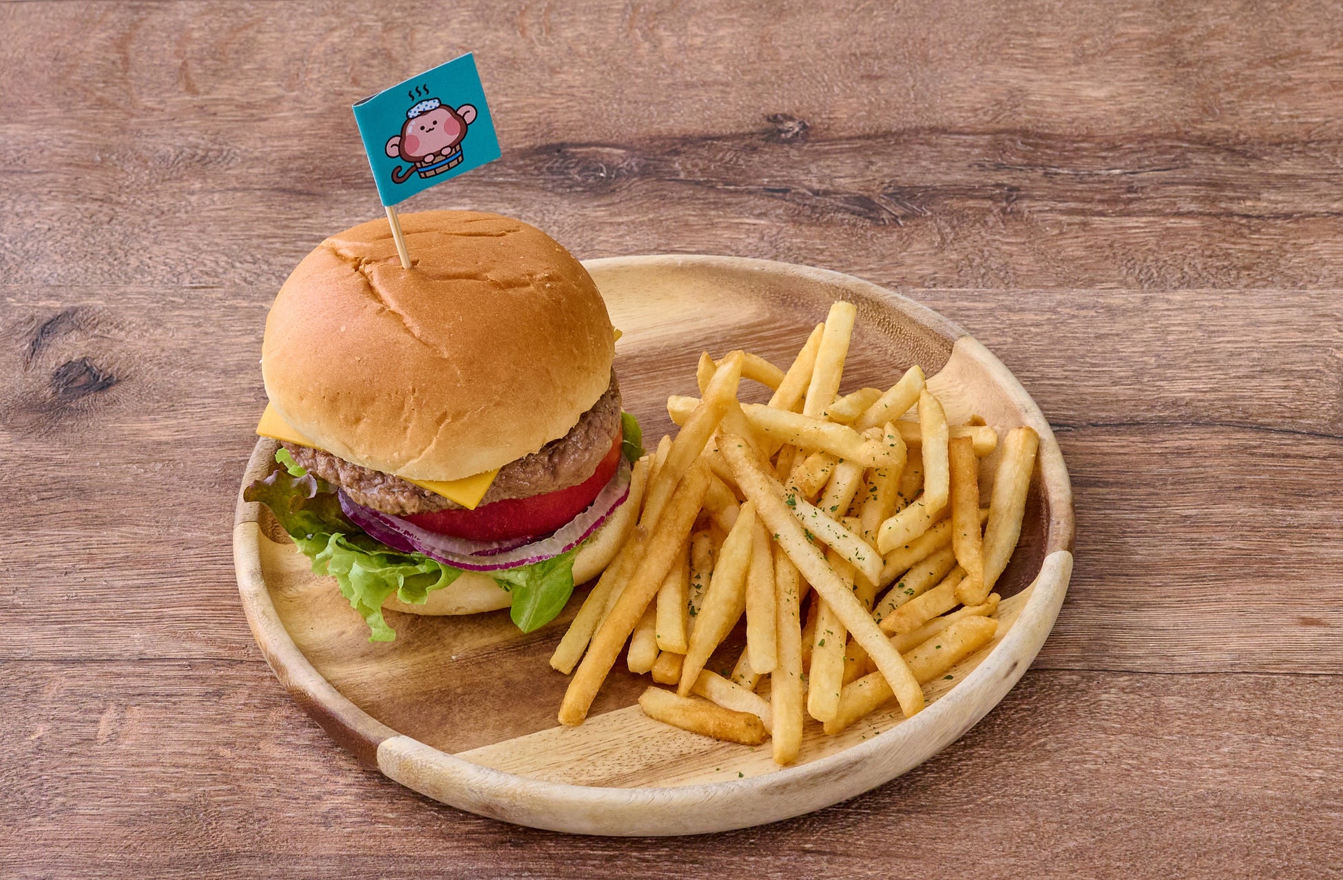 ハンバーガーの上には、おおば湯オリジナルキャラクターの“ゆきち”や、番組ロゴがあしらわれたフラッグが飾られます。