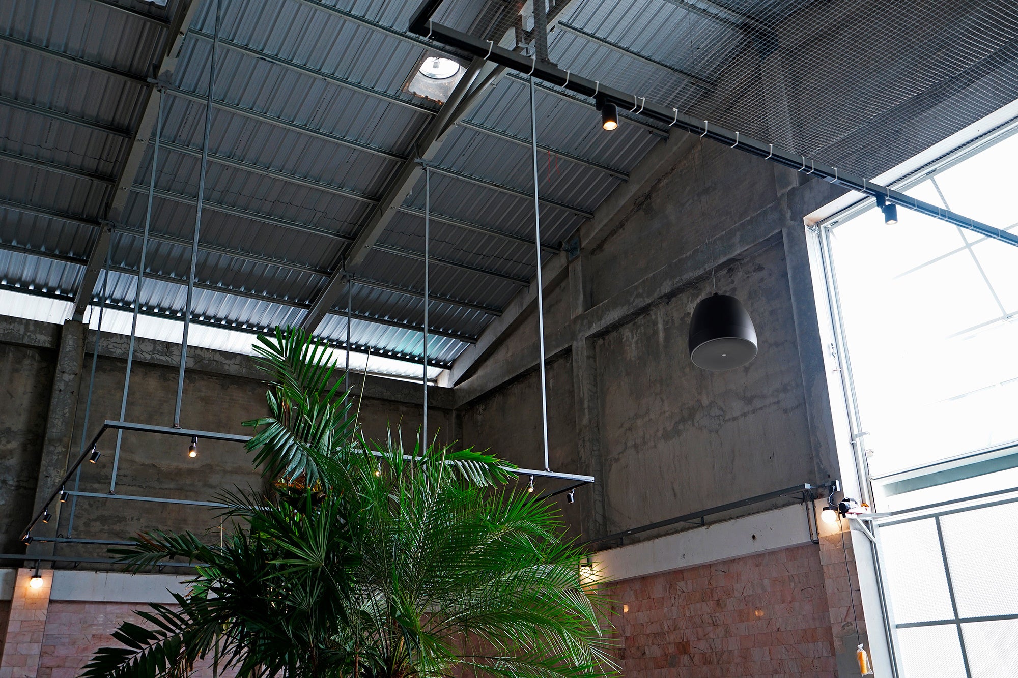1. 高天井、開放構造でも吊り下げて設置することで、快適な音を届けるペンダント型スピーカー