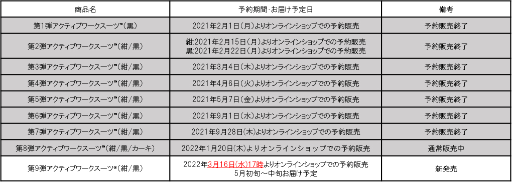 ■『アクティブワークスーツ®第9弾』の予約販売状況