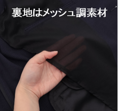 生地は、昨年大好評のサッカー素材を使用。凹凸感があり、肌離れもよいため、夏のべたつき感を軽減、さらさらした肌触りでお召しいただけます。また、裏地にメッシュ調素材を使用したことで、従来品と比較し、肌の張り付き感も軽減され、快適な着心地を実現しました。