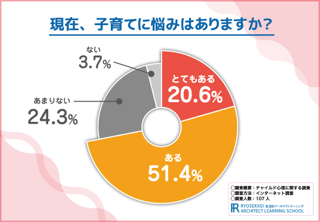 【チャイルド心理資格の取得なら諒設計アーキテクトラーニング】子育てのお悩み調査!7割以上の親御さんが子育てに悩みがあると回答!具体的な悩みとは…?