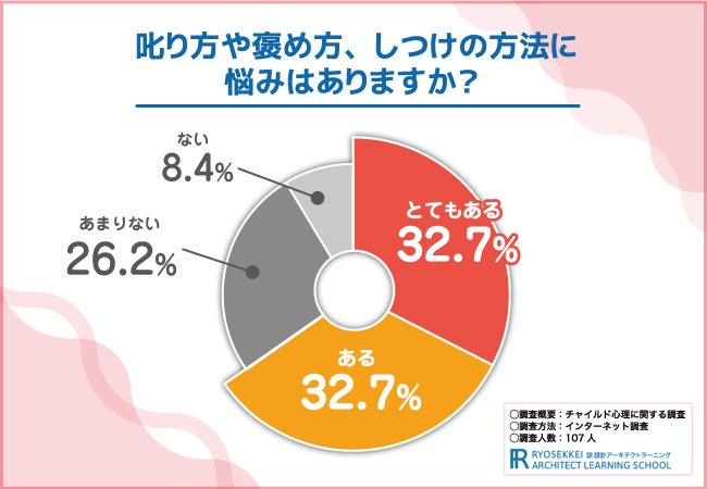6割以上の方が叱り方や褒め方、しつけの方法に「悩みがある」という結果になりました。