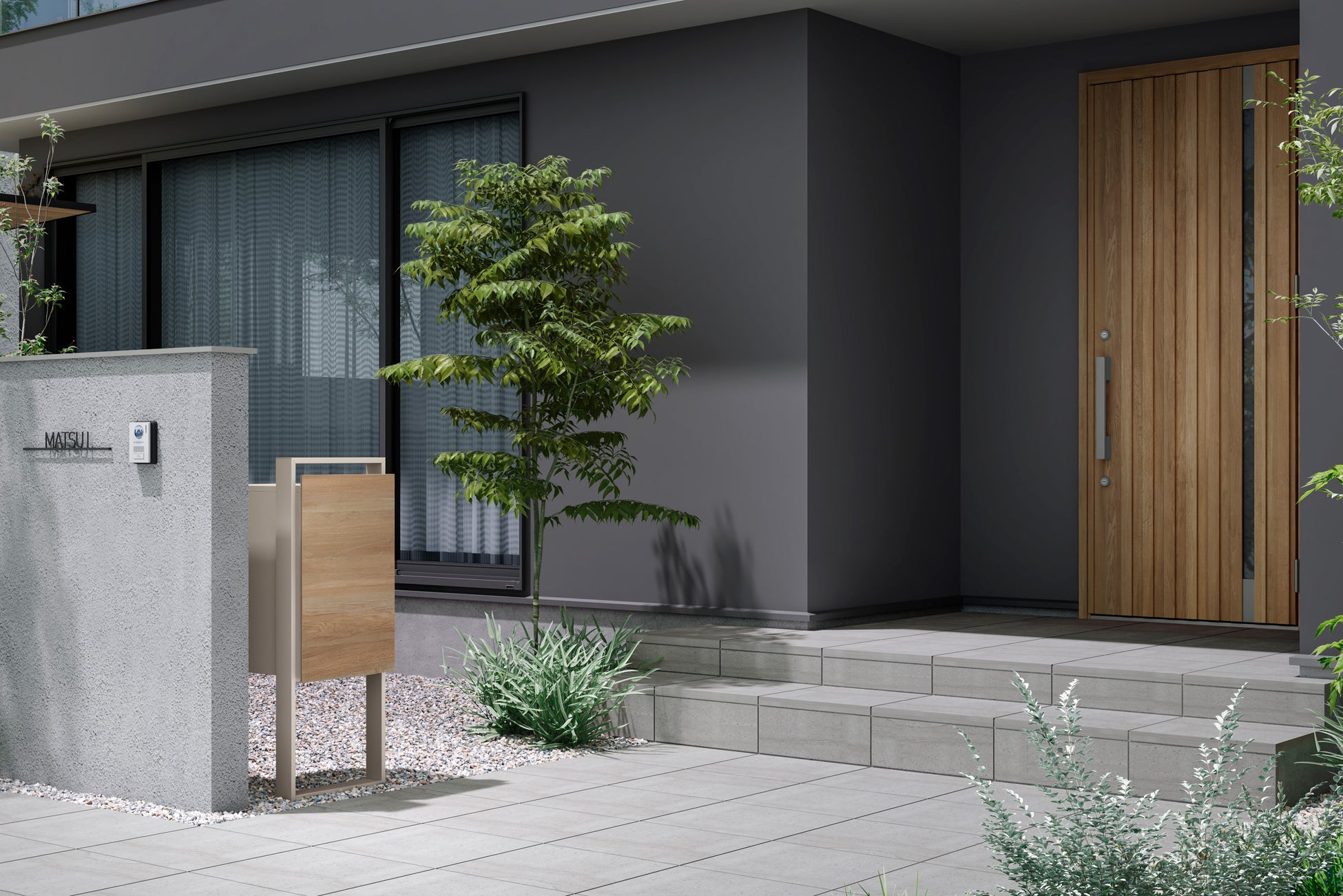 ポストと宅配ボックスの単独・一体使用が選択可能な自由度が高い製品です。機能部・ねじ・取付目地などを外扉で隠す二重扉構造により、壁に馴染むノイズレスなデザインに仕上げました。また、宅配ボックスは電気配線が不要な機械式。120サイズの荷物まで受け取ることができ、内部フラップを使用することで複数受けが可能な製品です。