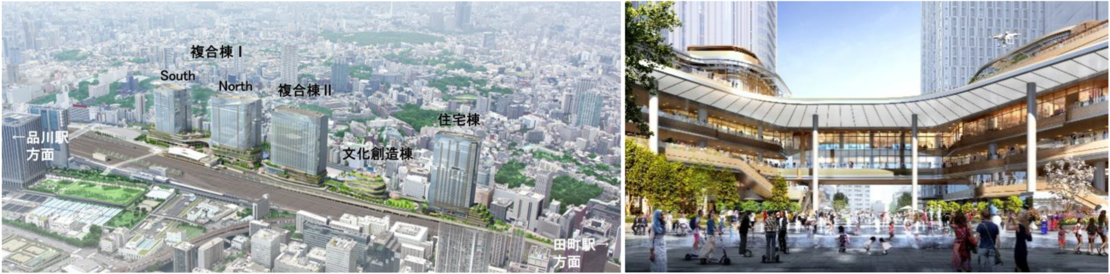 複合棟Ⅰおよび高輪ゲートウェイ駅周辺エリアを2024年度末(2025年3月)に開業し、その他の棟(複合棟Ⅱ・文化創造棟・住宅棟)および各棟周辺エリアを2025年度中に開業します。