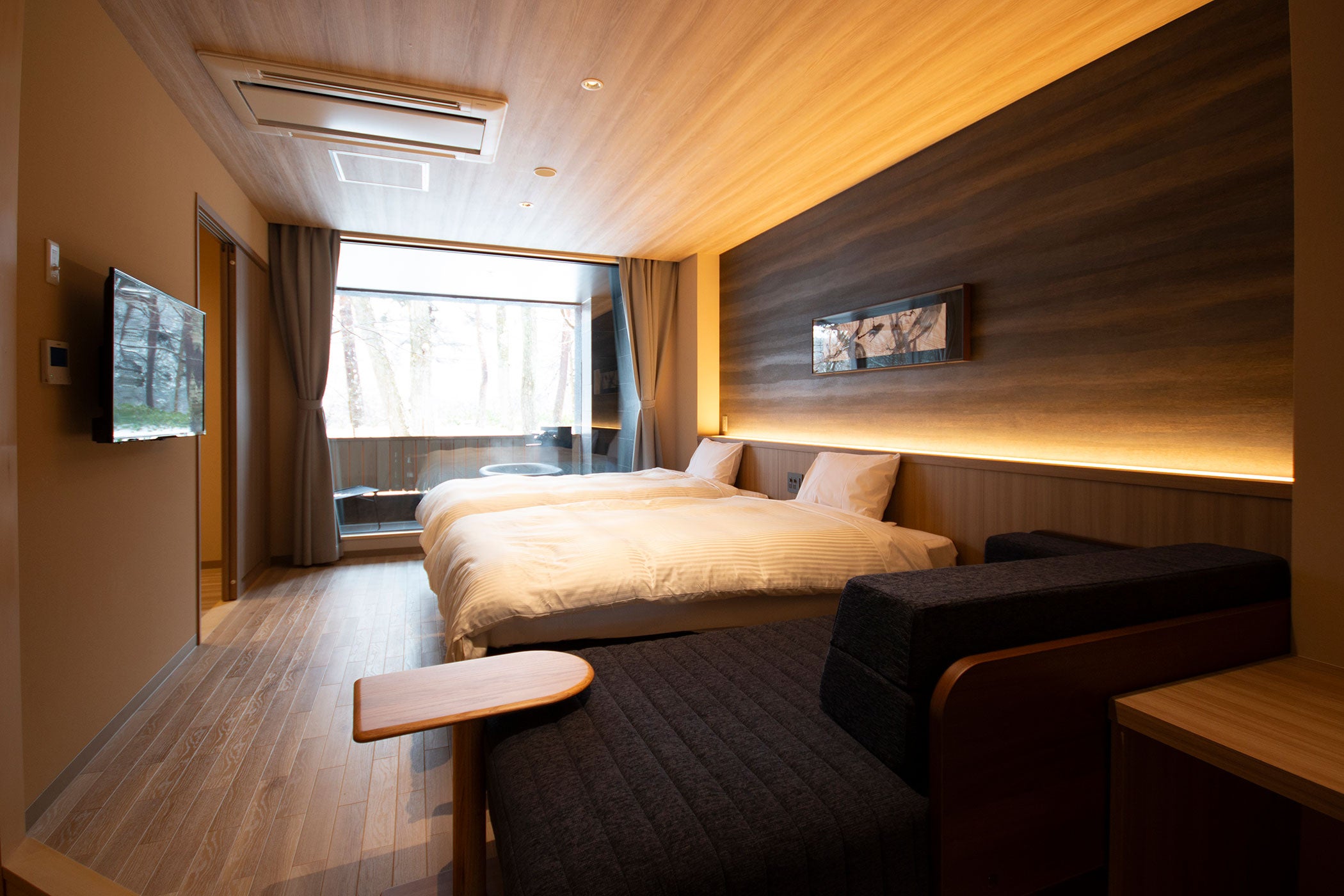 また、一部の客室を和の安らぎとベッドの快適性を兼ね備えた「和ベッドルーム」にリノベーションいたしました。和の情緒を残しつつ、ベッドで快適に過ごせる和ベッドルームは、シニアのお客様や小さ なお子様連れのお客様も快適にお過ごしいただけます。そのほか、和室・洋室・和洋室など、多種多様な部屋タイプを揃えているので、宿泊される人数や旅の目的に合わせてお好きなタイプをお選びいただけます。