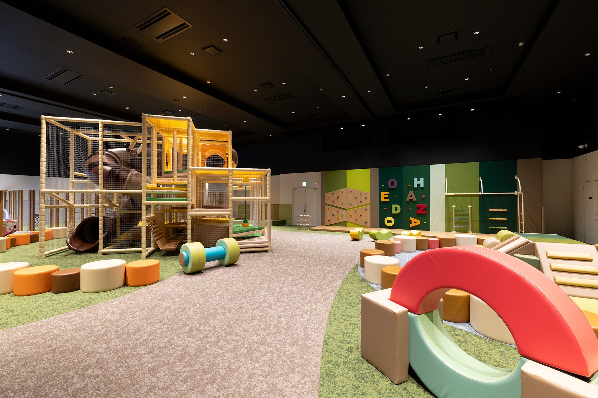 大型遊具やすべり台など、五感をくすぐる遊び場を揃えたキッズパークをご用意いたしました。レストスペースも完備しておりますので、お子様が楽しく遊ぶ姿をゆったりと見守ることができます。