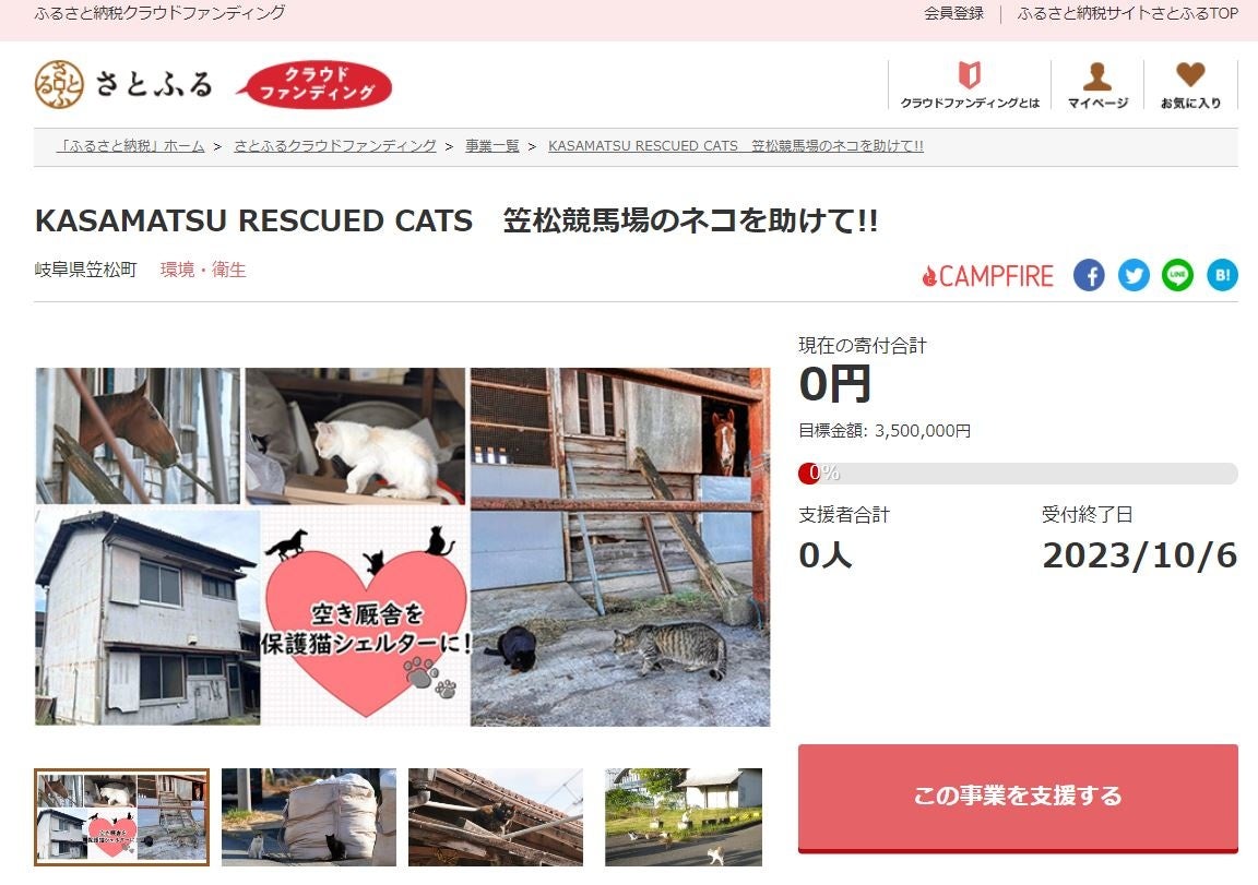 事業名:KASAMATSU RESCUED CATS 笠松競馬場のネコを助けて!!