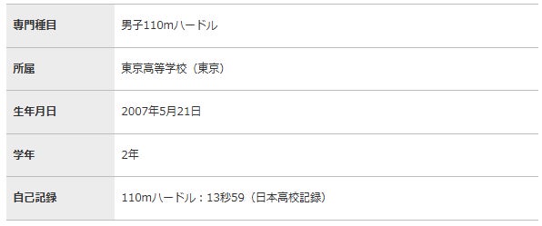 2023年春に東京高へ進学すると、ハイハードルへの移行に苦しむことなく、1年時から東京都大会3位、南関東大会5位とクリアして、インターハイに出場。秋には、国民体育大会(少年B)で13秒92(U20規格)をマークして全国初優勝を果たすと、U16陸上大会も2位の成績(U20規格)を残し、一躍脚光を浴びる存在となった。