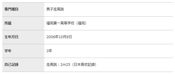 ・第77回全国高等学校陸上競技対校選手権大会男子走高跳 優勝