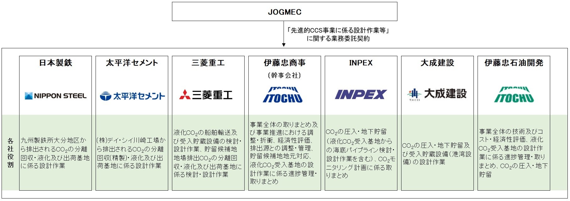 伊藤忠商事株式会社(本社:東京都港区、代表取締役社長COO:石井敬太、以下「伊藤忠商事」)、日本製鉄株式会社(本社:東京都千代田区、代表取締役社長COO:今井正、以下「日本製鉄」)、太平洋セメント株式会社(本社:東京都文京区、代表取締役社長:田浦良文、以下「太平洋セメント」)、三菱重工業株式会社(本社:東京都千代田区、代表取締役社長CEO:泉澤清次、以下「三菱重工」)、株式会社INPEX(本社:東京都港区、代表取締役社長:上田隆之、以下「INPEX」)、大成建設株式会社(本社:東京都新宿区、代表取締役社長:相川善郎、以下「大成建設」)及び伊藤忠石油開発株式会社(本社:東京都港区、代表取締役社長:堤孝行、以下「伊藤忠石油開発」)は、7社共同で提案した日本海側東北地方CCS事業構想(以下「本構想」)が独立行政法人エネルギー・金属鉱物資源機構(以下「JOGMEC」)の公募事業である「先進的CCS事業に係る設計作業等」(以下「本作業」)に採択されましたので、お知らせいたします。※1