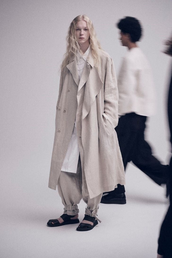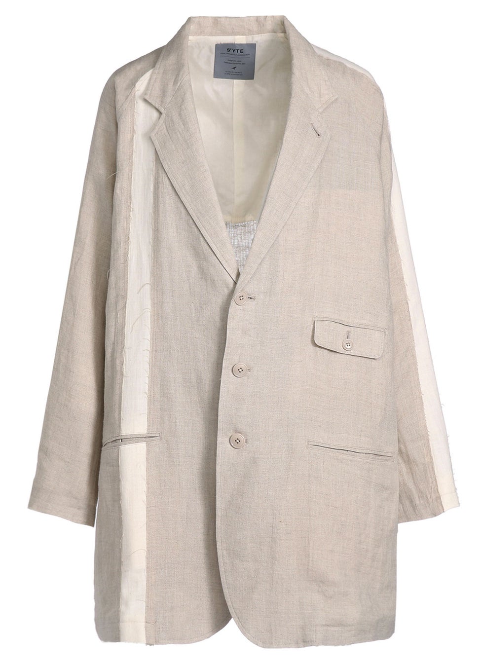 ランスリーブジャケットの前身頃に別布のライン切り替えと裁ち切りのディティールを加えたS’YTEが提案する退廃的なアイテムです。パンツには、発売ヨウジより特に人気の高い袴バルーンパンツ。袴パンツとバルーンパンツの要素を取り入れた2Wayとなっており、春夏仕様にリネンガーゼ素材にアップデートしました。
