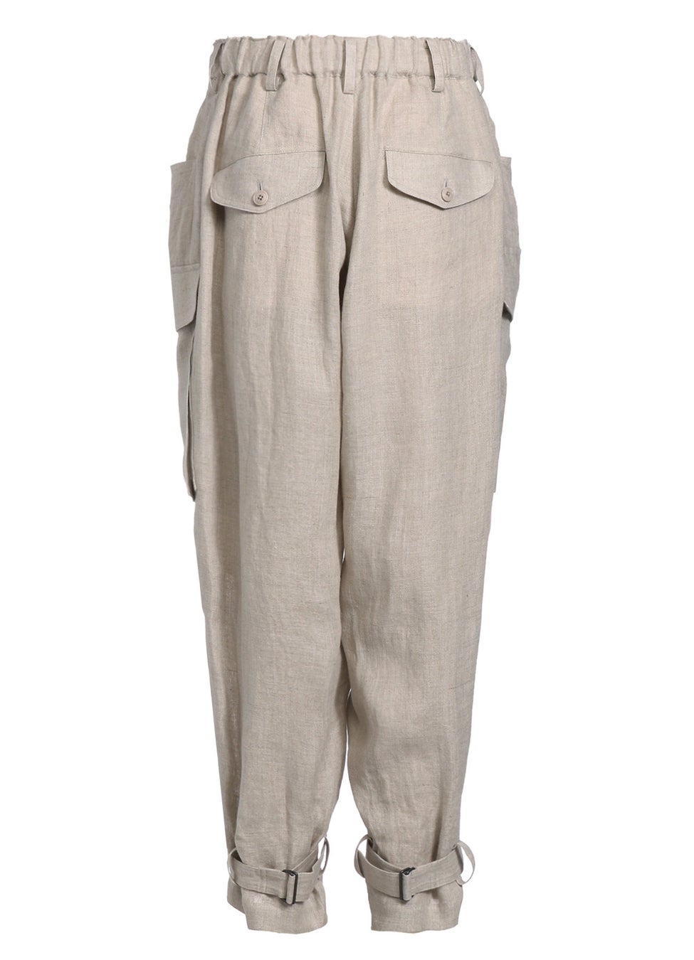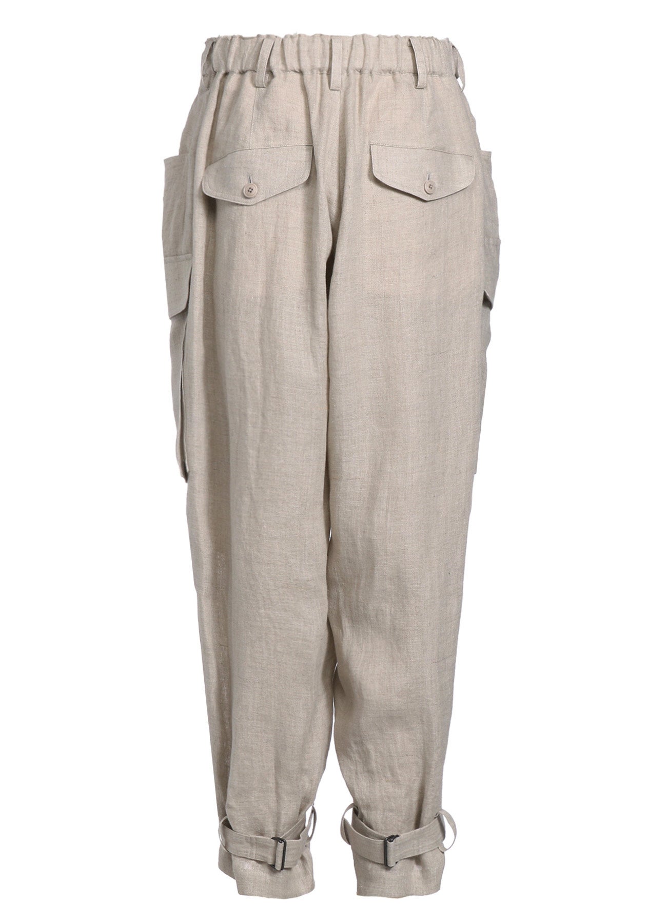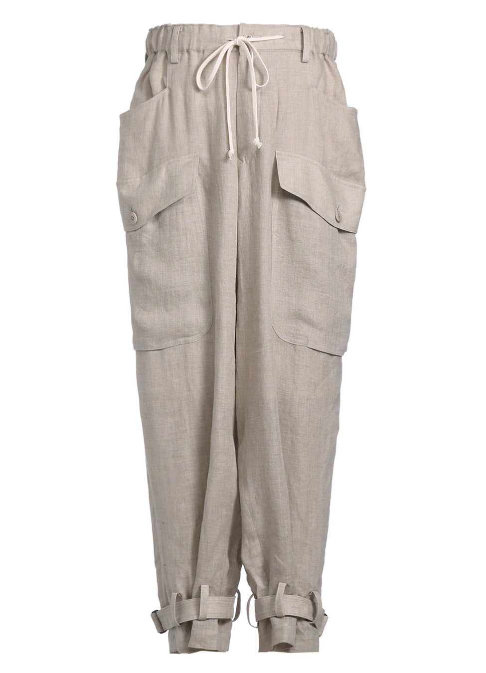 生成りの麻で織り上げたガーゼ素材のロングコートとパンツは、粗野でドライな質感は使用するうちに素材の魅力を引き出すアイテムとなっています。パンツの太もも部分に取り付けられたフラップパッチポケットは、通常のサイズより大きめにすることで機能性も兼ね備えています。