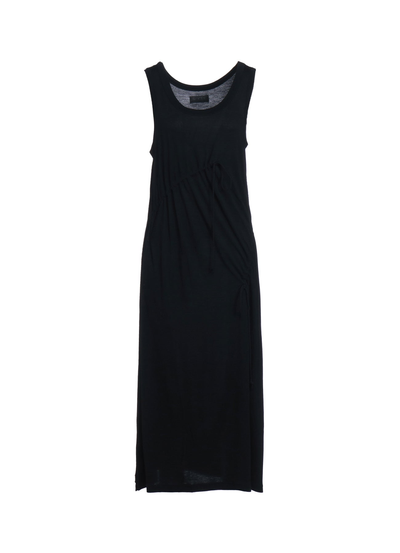 しなやかで肌触りの柔らかなレーヨン天竺で仕立てたカットソードレスは、流れ落ちるような美しいシルエットと身頃に通した紐でギャザーを寄せれば立体的な陰影が生まれるアイテムです。ブラックコーディネートに華を添える、今シーズンのキーカラーのブルーと定番ブラックの2色展開。