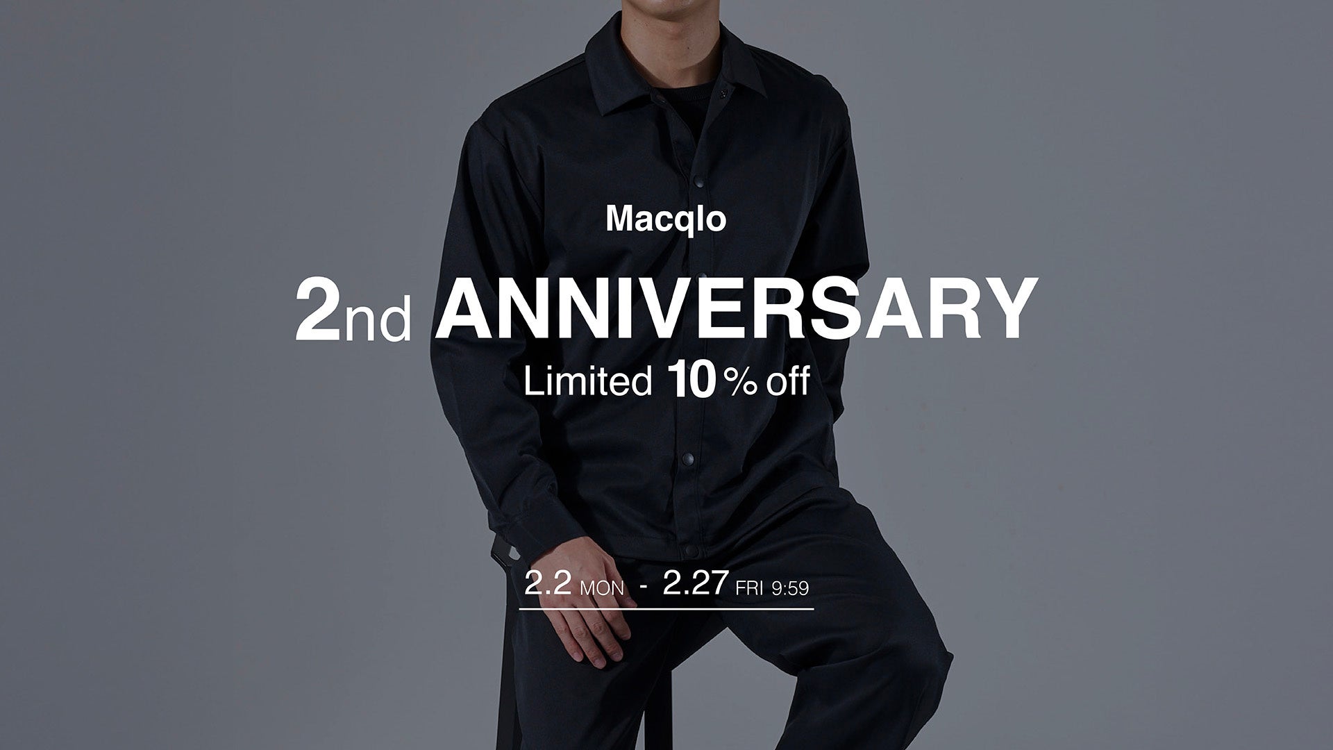 この度、2月2日(月)10:00から2月27日(金) 9:59の間、「Macqlo 2nd ANNIVERSARY」を開催します。Macqloの公式オンラインストア・公式ショップにてMacqloのアイテムが全品10%OFF(※一部商品除く)でお買い求めいただけます。