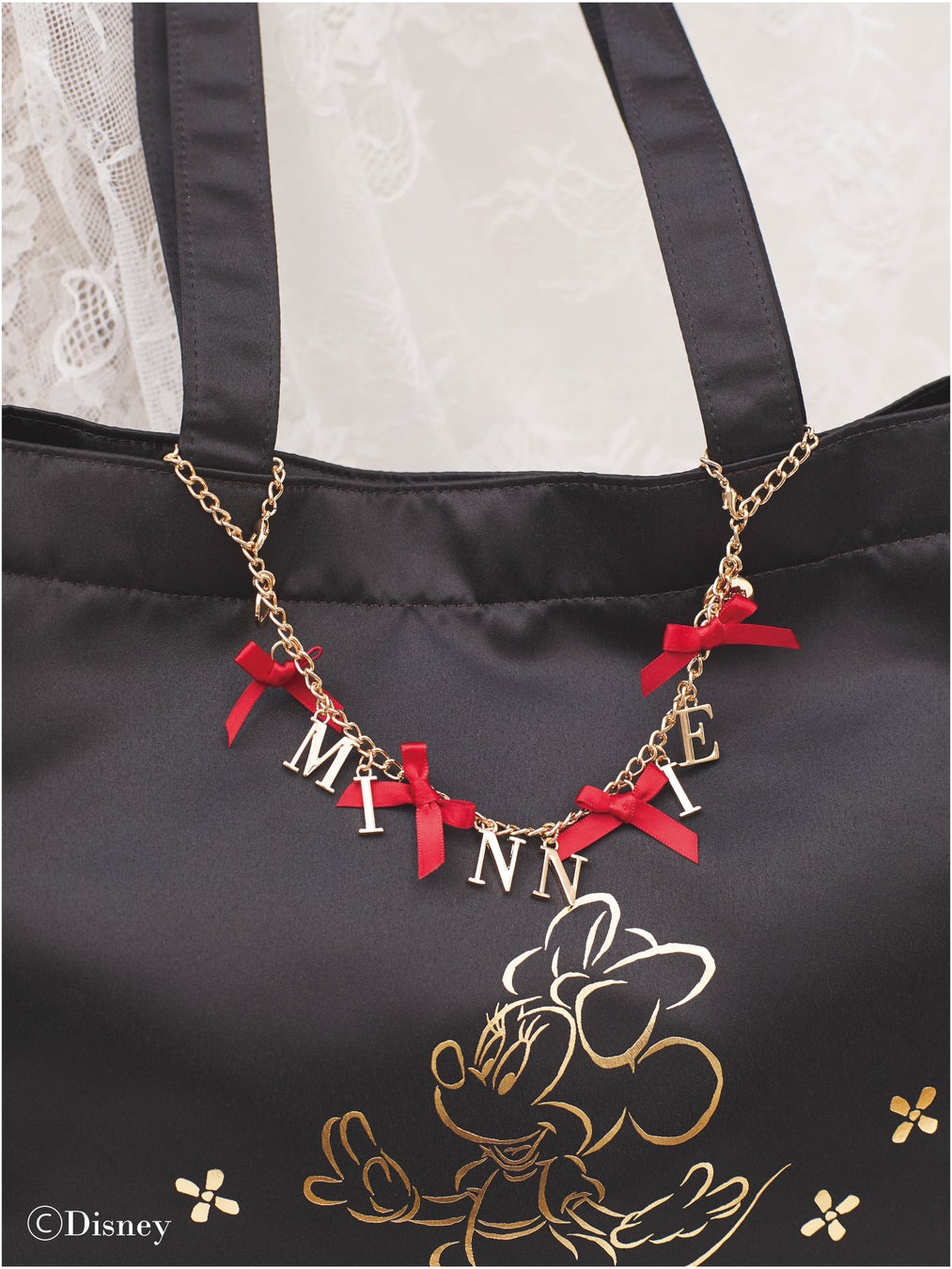 このほか、“MINNIE”のアルファベットと赤いリボンを組み合わせたバッグチャームをご用意いたしました。