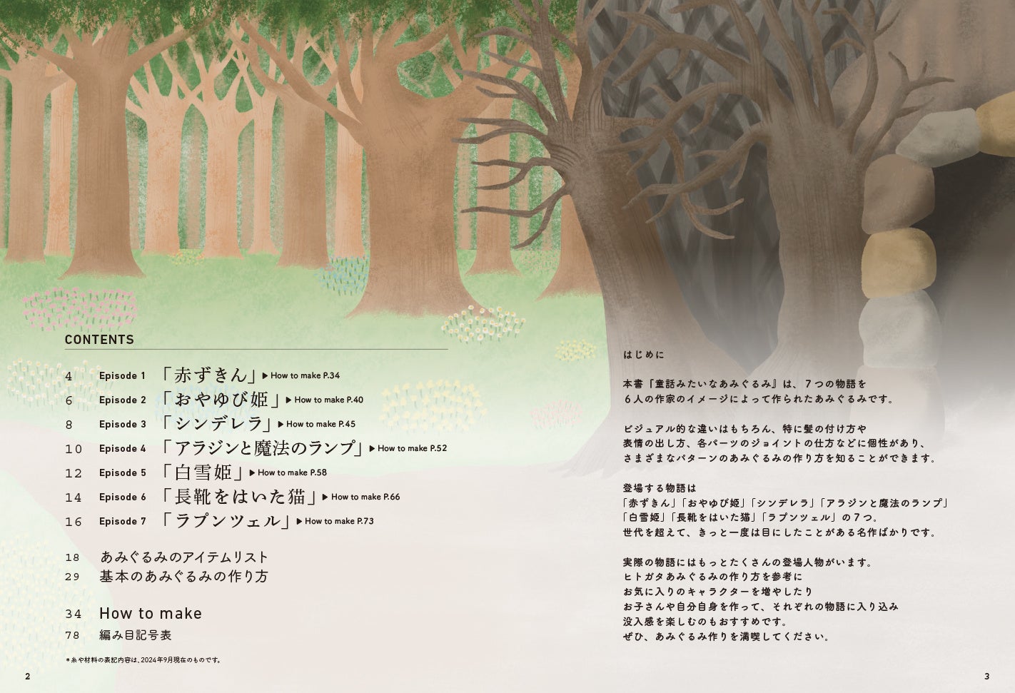 6人の作家が7つの物語をテーマに創作したかわいいあみぐるみ。11の人形と67種のアイテムを紹介。