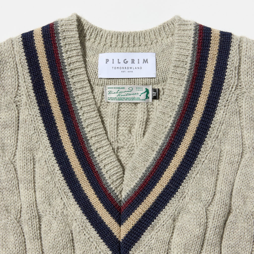 8月15日(木)より、TOMORROWLAND店にて、英国の〈RICHMOND KNITWEAR〉へ、モデルとカラーリングを別注したクリケットセーターを発売。