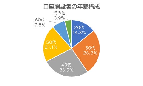 新規にFX口座を開設した投資家は、40代が26.9%、30代が26.2%で、この2つの年代が半数を占めた。以下、50代が21.1%、20代が14.3%となった。50代の口座開設者割合が増加している一方で、20代の口座開設者の割合が減少傾向であるのは気になる。