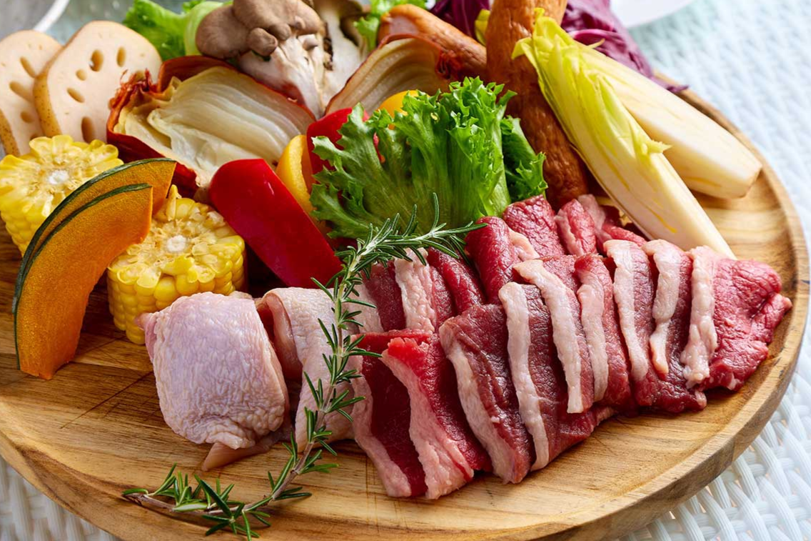 国産牛を中心とした定番BBQに加え、淡路牛を長期間ドライエイジングすることで旨味を凝縮した、ここでしか味わえない自家熟成肉「カリコ熟成肉“極(きわみ)”」をご用意。さらに、淡路島産食材と組み合わせた贅沢なBBQメニューもお楽しみいただけます