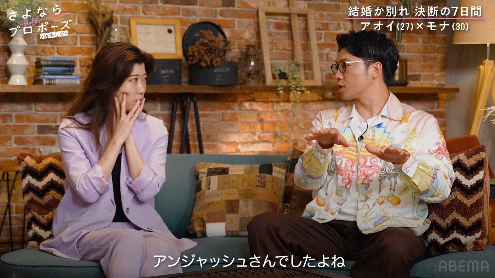 その後、2人はモナの「アオイは相談の中身、本質が見られてない」との発言から、ただ話を聞いてほしいモナと建設的なアドバイスを送るべきと考えているアオイの意見が対立。モナは「相談しても求めていない本に書いてあるようなことをアドバイスしてくる」「求めているのはただ甘えたいとか癒し」とし、アオイはただ同調しても「何も(詳しいことが)分からんのに『頑張ってるね』って言葉をかけてるってならない?」「『頑張ってたね』って言うだけで癒しになってるの?」と自身の意見をぶつけるも、モナは「なる」と主張。最終的にはアオイが折れる形でこの話は終了となりました。