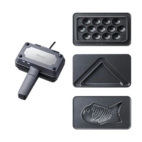 サクッ、モチッな香港発のワッフル、「エッグワッフル」、1人用の食パン1枚焼きの三角ハーフホットサンドが作れます。あんこがたっぷりと詰まった美味しいたい焼きが作れる「たい焼きプレート」付き。