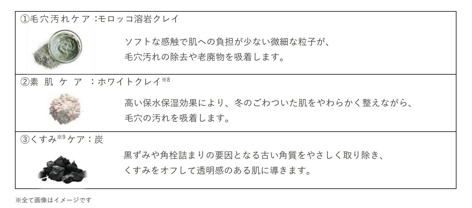 1.【季節の変わり目の毛穴汚れをほぐす】毛穴汚れにアプローチする 3 種類の成分を配合