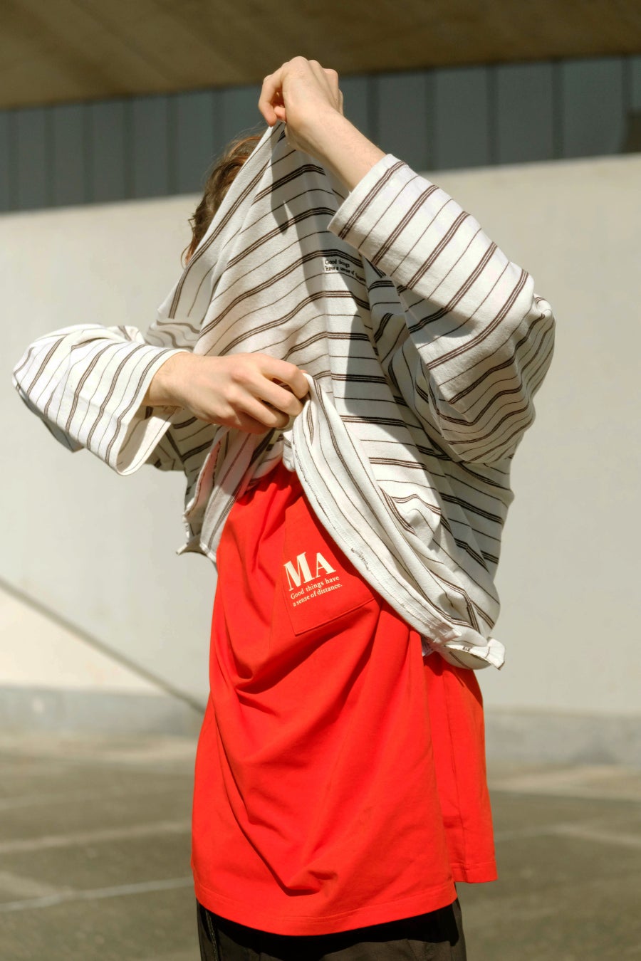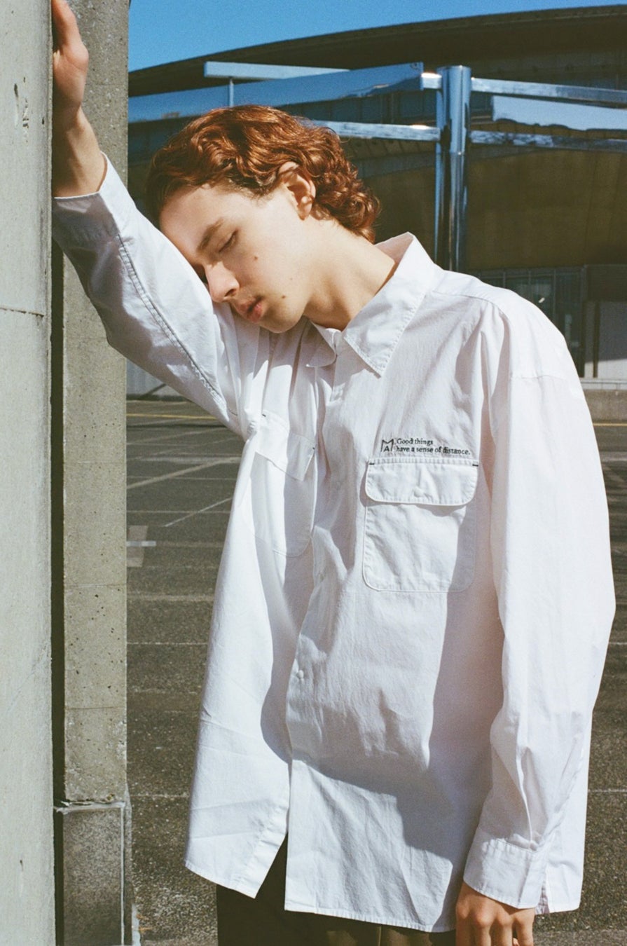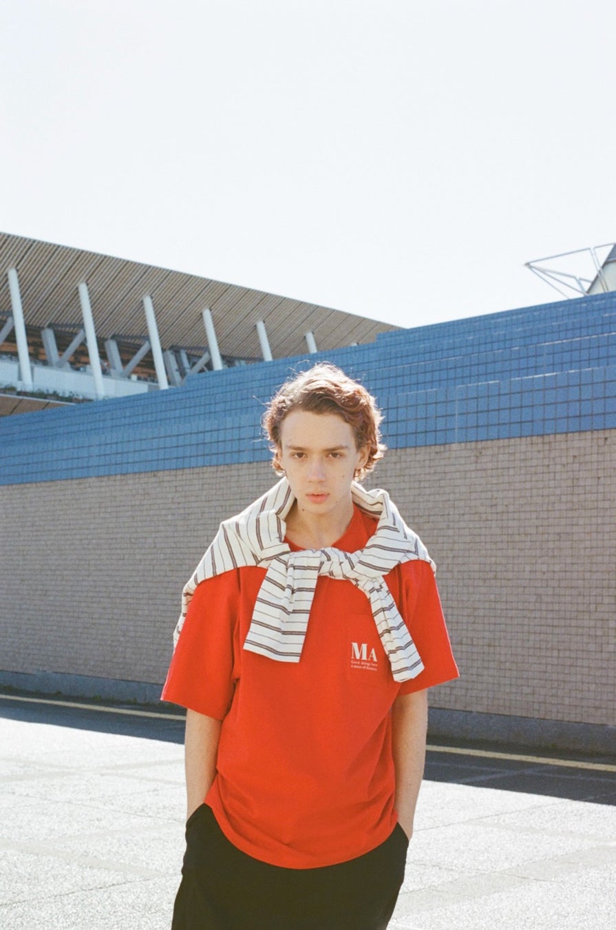 Good things have a sence of distanceのキーフレーズの刺繍が入ったMAの定番シグネチャー半袖TEE。生地感が程よい厚みでボックスシルエットのため、小慣れた落ち感で着用が可能です。