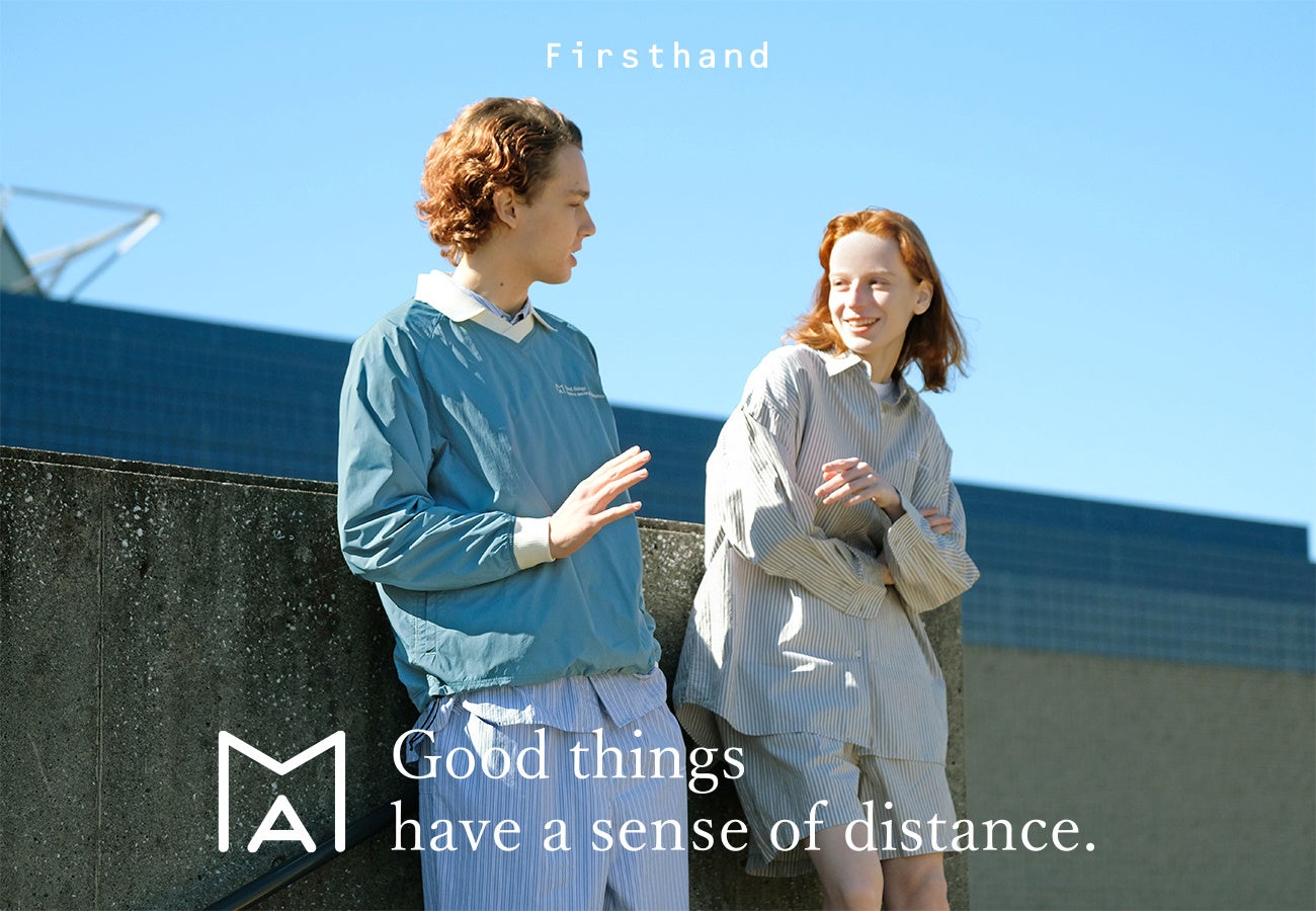 「Good things have a sense of distance. =いいモノには距離感が必要」をコンセプトに、ユニセックスカシミヤブランド「BODHI」のデザイナー・水谷 倫(みずたに さとし)氏を監修に迎えるMA Firsthand。キーフレーズである「Good things have a sense of distance. 」は、新しいものと古いもの、伝統と最先端、男性と女性など世の中に対比される物事のなかで、お互いの良さを認め合うちょうどいい距離=「間」を知るというコンセプトを表現。