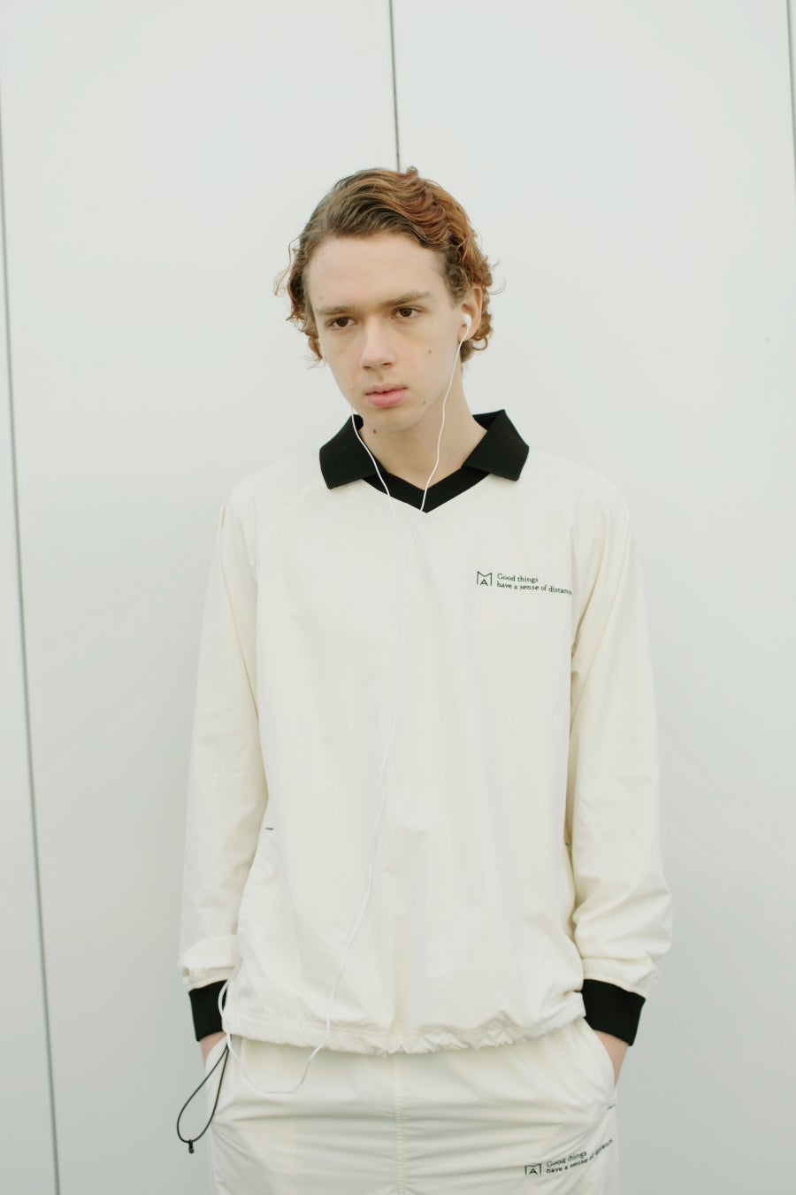 ナイロンプルオーバーは、ヴィンテージのフットボールウェアから着想を得た襟付きのデザインです。パンツは、配色ステッチを施すことでアクセントに。