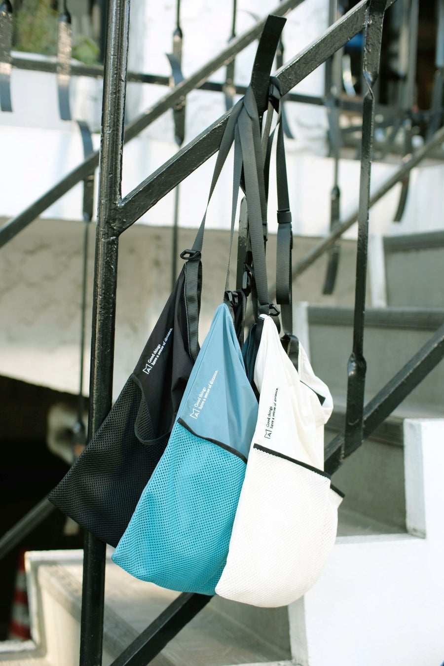 外ポケットはメッシュ使用でデザイン性も機能性にも優れています。調節可能なショルダータイプです。
