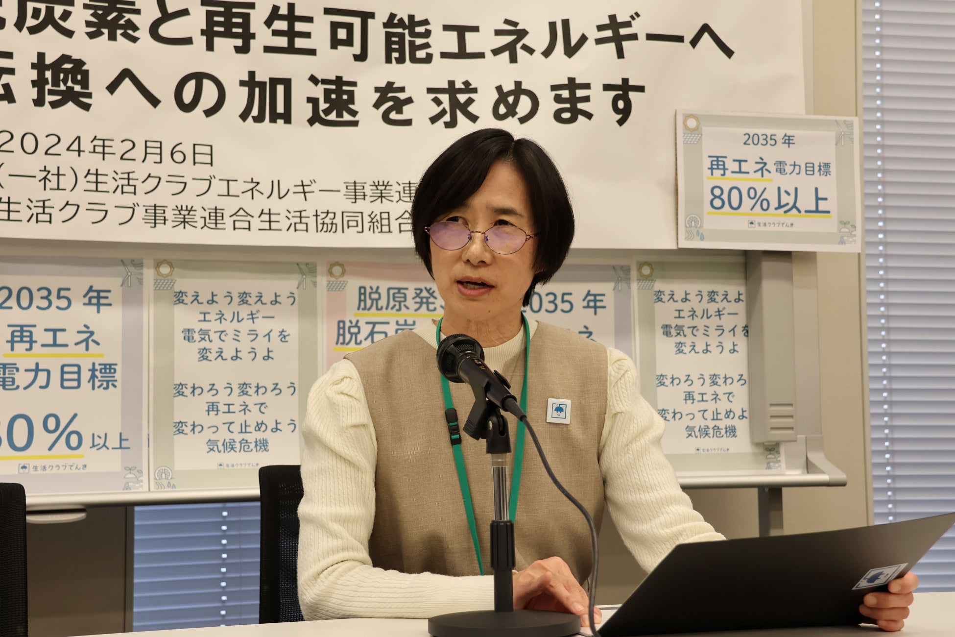 エネルギー政策提案運動 実行委員長 佐野めぐみ(生活クラブ神奈川 副理事長)