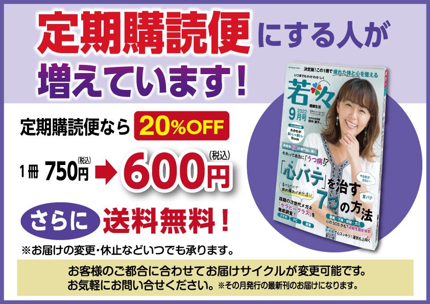 それって本当に「うつ病」!?心バテを治す7つの方法雑誌『若々(わかわか)』9月号は9月1日発売!