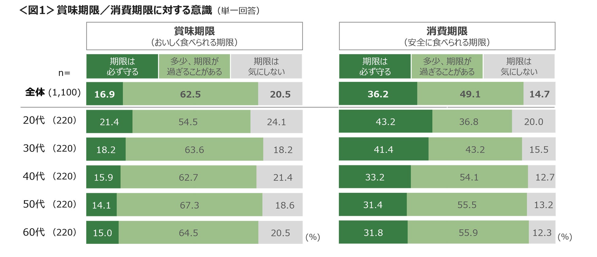 20代・30代は、消費期限を「必ず守る」が4割を占める。<図1>