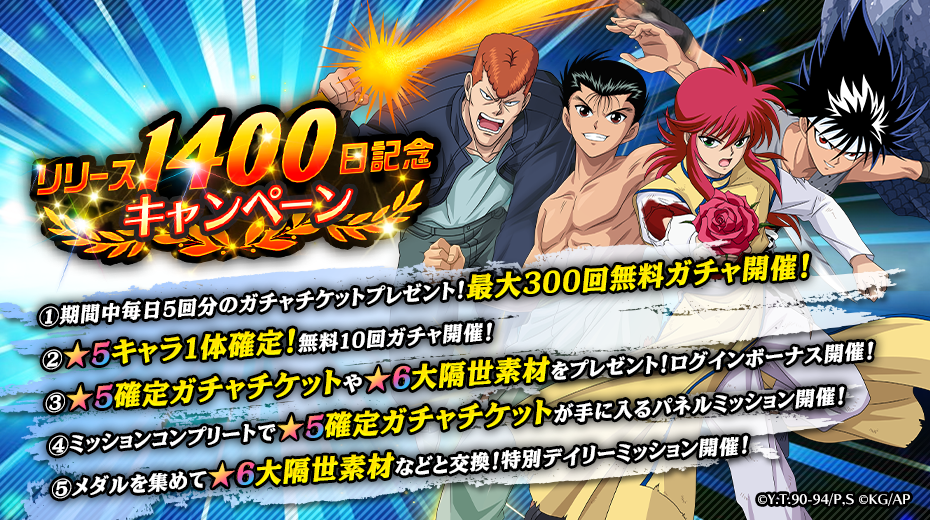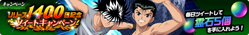 「幽☆遊☆白書 100%本気(マジ)バトル」リリース1400日記念キャンペーンを6月28日(火)より開催!