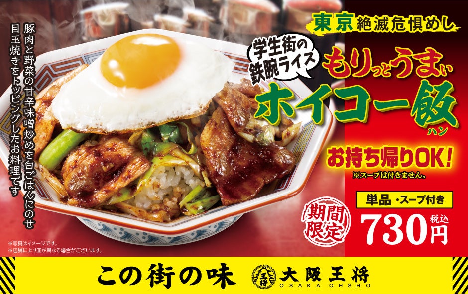 株式会社大阪王将(東京ヘッドオフィス:東京都品川区 代表取締役社長:植月剛)は、餃子専門店 「大阪王将」において、公式TwitterおよびInstagramで応募できる『初夏の”もりっとうまぃ!”ホイコー飯(ハン)無料券プレゼントキャンペーン』を2022年7月1日(金)より開催いたします。