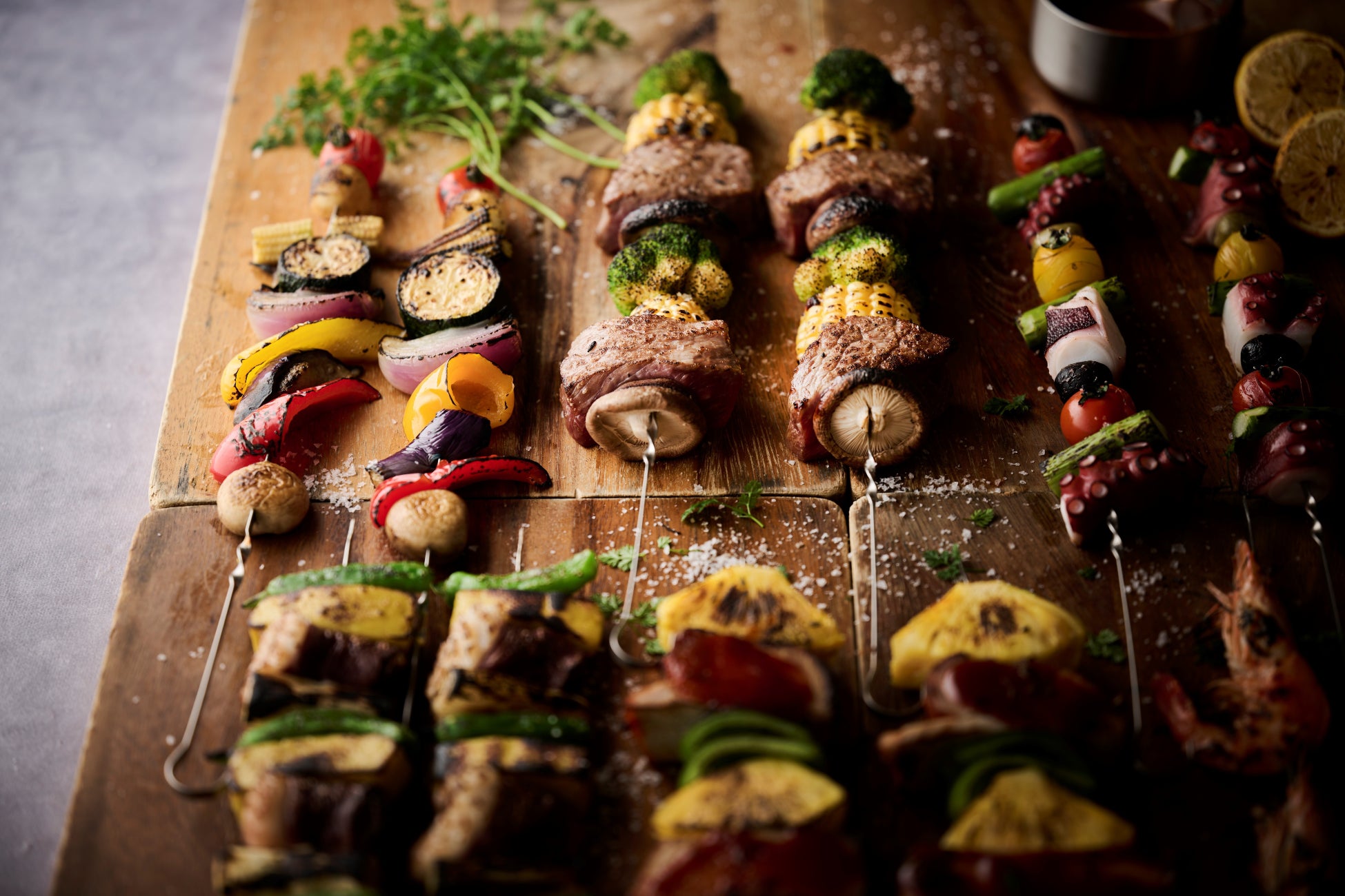 普段「ブルーバーズ ルーフトップテラス」にて提供しているバーベキューメニューをイベントのためにアレンジ。国産牛と海鮮の2種をプロシェットにてご提供。夏らしい旬の野菜と組み合わせたバーベキューメニューをお楽しみください。