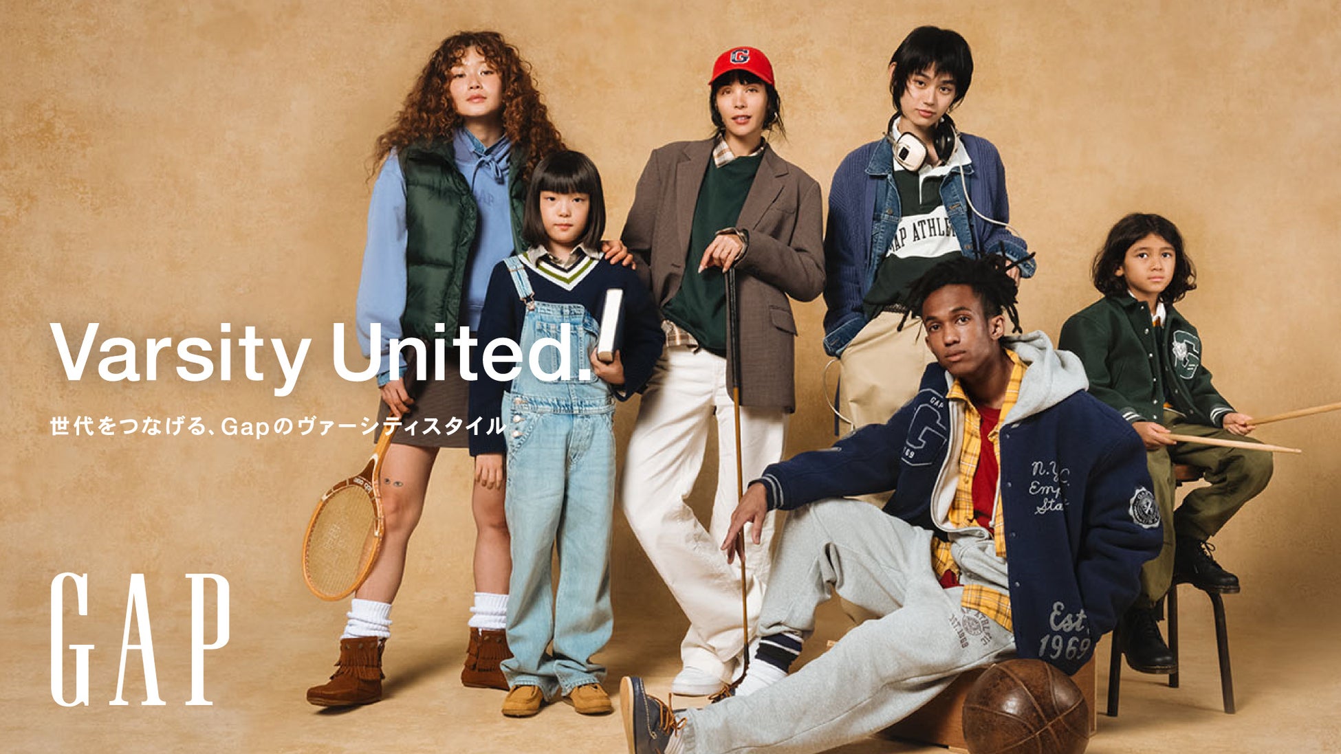 Gapは、FALL 2024最新コレクションから、クラシックなアイビールックとトレンドのアスレチックスタイルにフォーカスしたヴィジュアル「Varsity United. -世代をつなげる、Gapのヴァーシティスタイル」を、2024年9月24日(火)に公開します。本ヴィジュアルでは、紗羅マリー、のせりんなど個性や世代が異なる全6名のキャストを起用し、アイコニックなGAPロゴアイテムを軸に、フランネルシャツ、コーデュロイといった秋らしいアイテムを取り入れたカレッジ風スタイルを提案しています。
