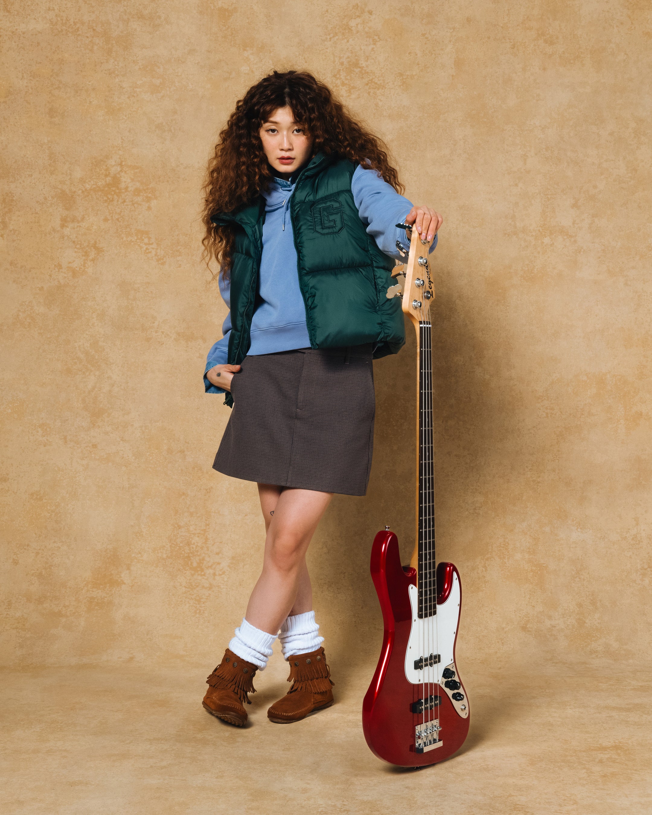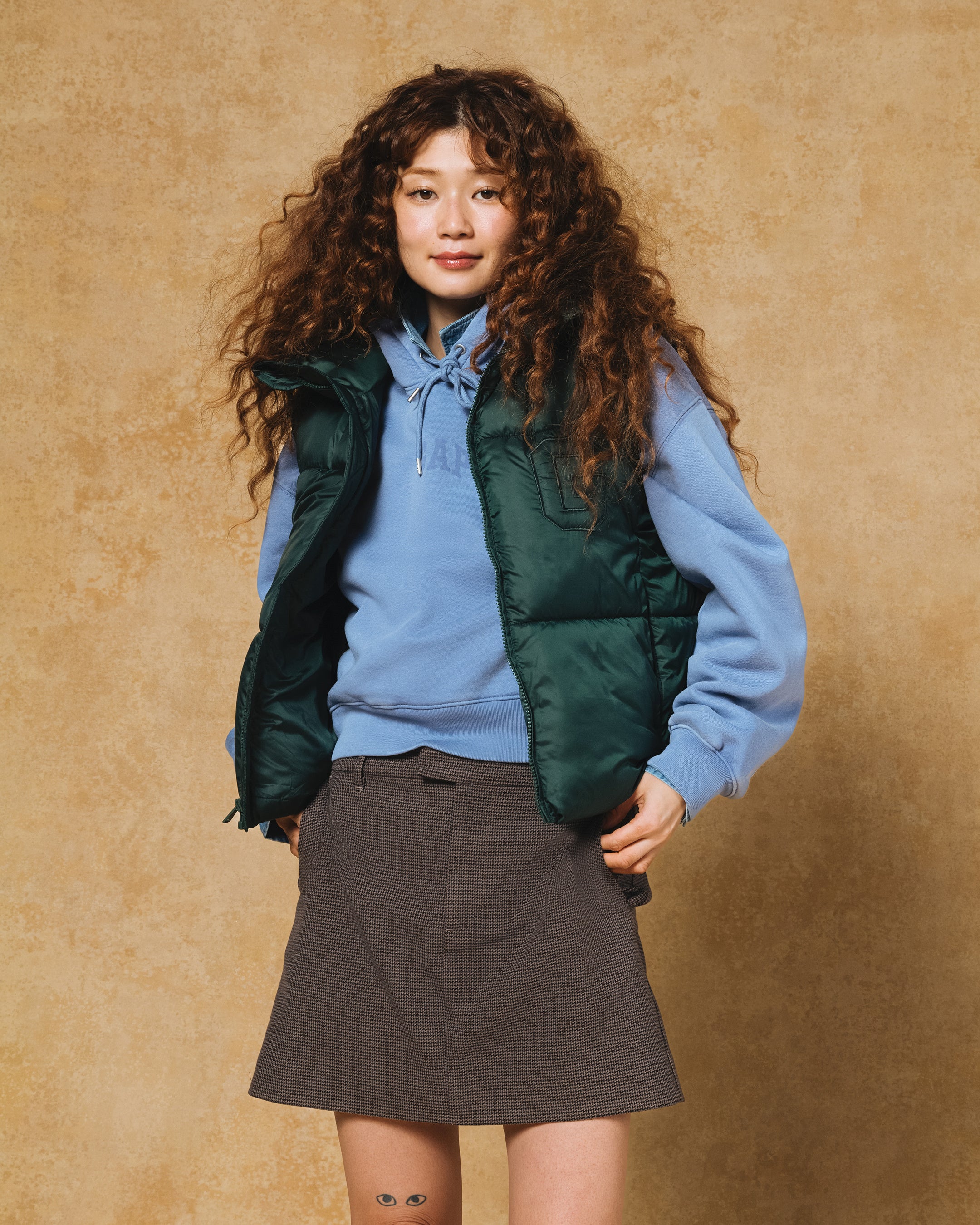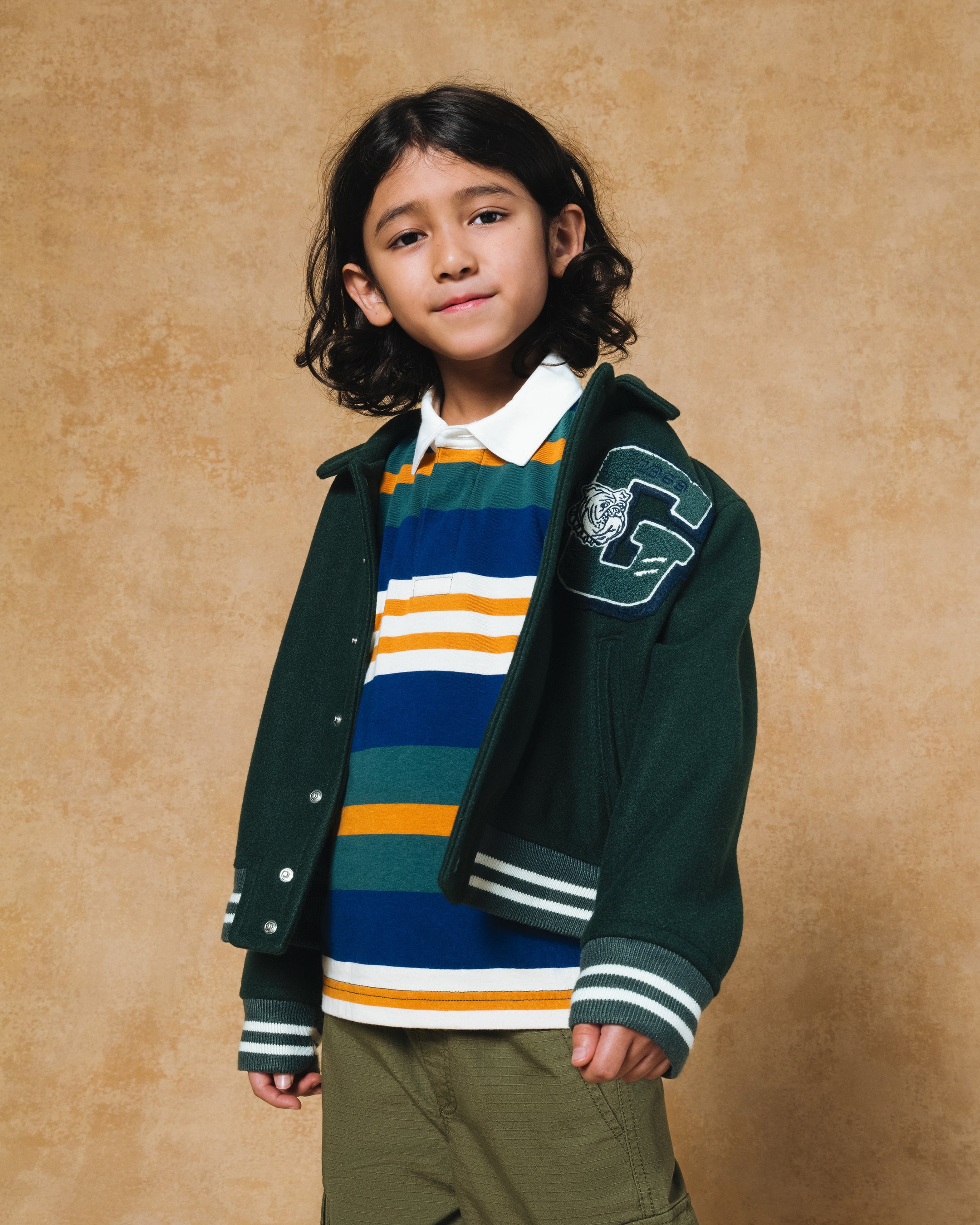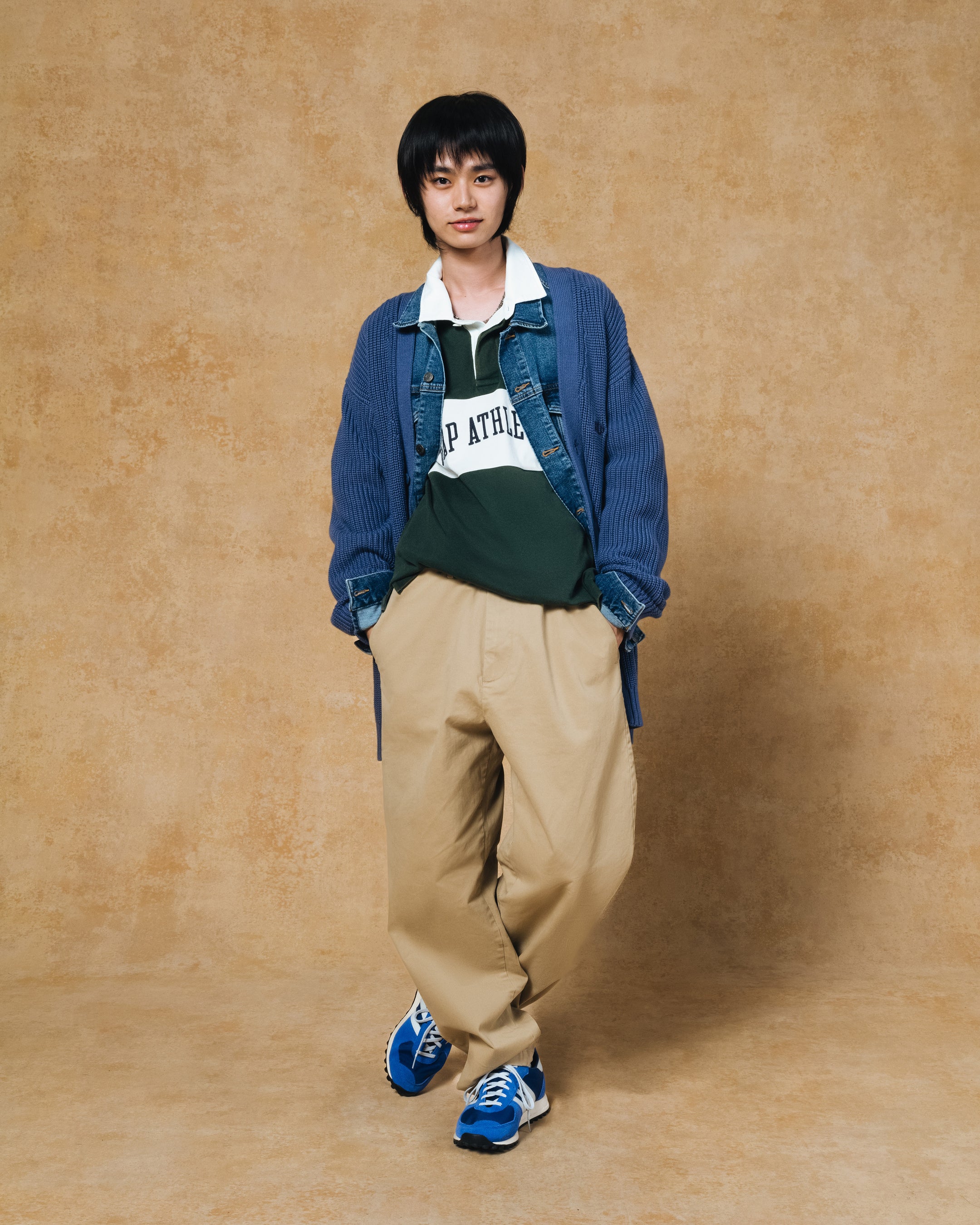 キャストが着用している注目アイテムは、今シーズンのキーカラーであるディープグリーンのロゴモックネックプルオーバー、ラガーシャツ、刺繍やワッペンがデザインされたウール混ロゴヴァーシティジャケット、ハーフジップスウェット、ポロミニドレスなどのカレッジ風アイテム。キッズは「G」ロゴが印象的なバーシティジャケット、アイビールックの定番チルデンニット、様々なカラーをミックスさせたロゴフーディーなどスクールスタイルに欠かせないアイテムです。キャストそれぞれのオリジナリティを表現し、オーセンティックとモダンが融合されたGapのヴァーシティスタイルの着こなしは必見です。
