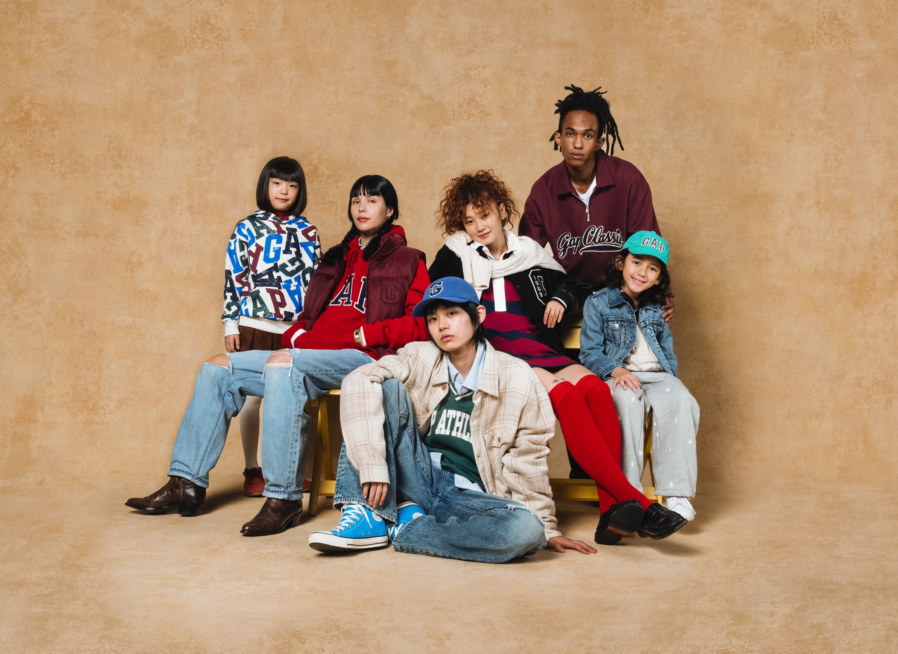 紗羅マリー、のせりんなど世代の異なる全6名のキャスト達が、GAPロゴなどFALLの最新コレクションにフィーチャーしたヴァーシティスタイルを披露