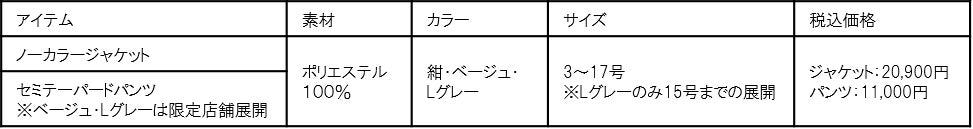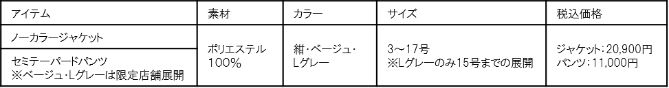 働く女性のキモチに寄り添う「MeWORK(ミワク)」プロジェクトから、昨年展開した「麻調セットアップ」が大変ご好評だったことを受け、ラインナップを拡大し販売します。麻のようなカジュアル感がありつつ、光沢感による上品さも兼ね備えた素材が特長の本商品は、「きちんと感」があり、ビジネスシーンに最適な一着です。また、働く女性に嬉しい「洗える・防シワ・ストレッチ」に加え、夏に嬉しい「UVカット効果」もあります。カラーは定番の紺に加え、昨今のトレンドでもある夏らしいライトグレー・ベージュを新しく展開。お好みのスタイルに合わせ、着まわしが可能です。スタイルは、こなれ感のあるノーカラージャケットと、程よいゆとりと「きちんと感」のあるセミテーパードパンツをご用意。働く女性に嬉しい、楽なのに着るだけで様になるセットアップです。